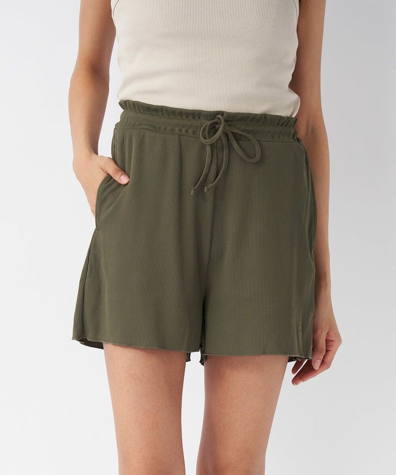 大人気リブ素材のショーツ。ハイウエストでとにかく細見えするシルエット。