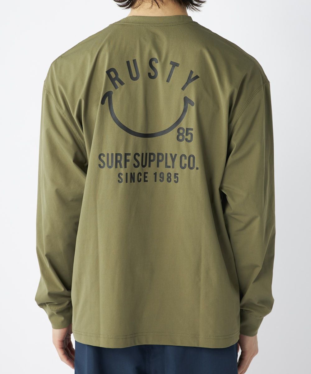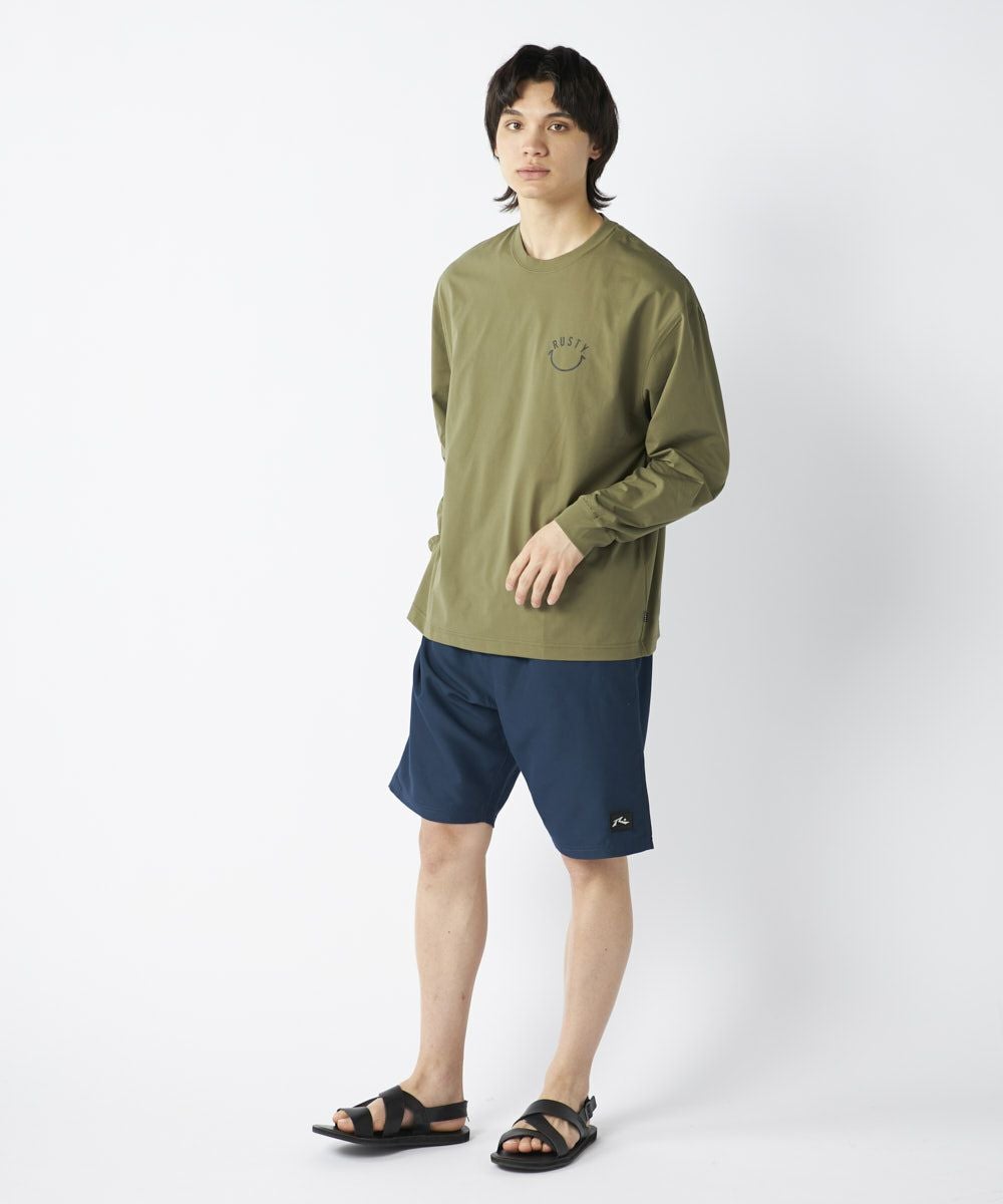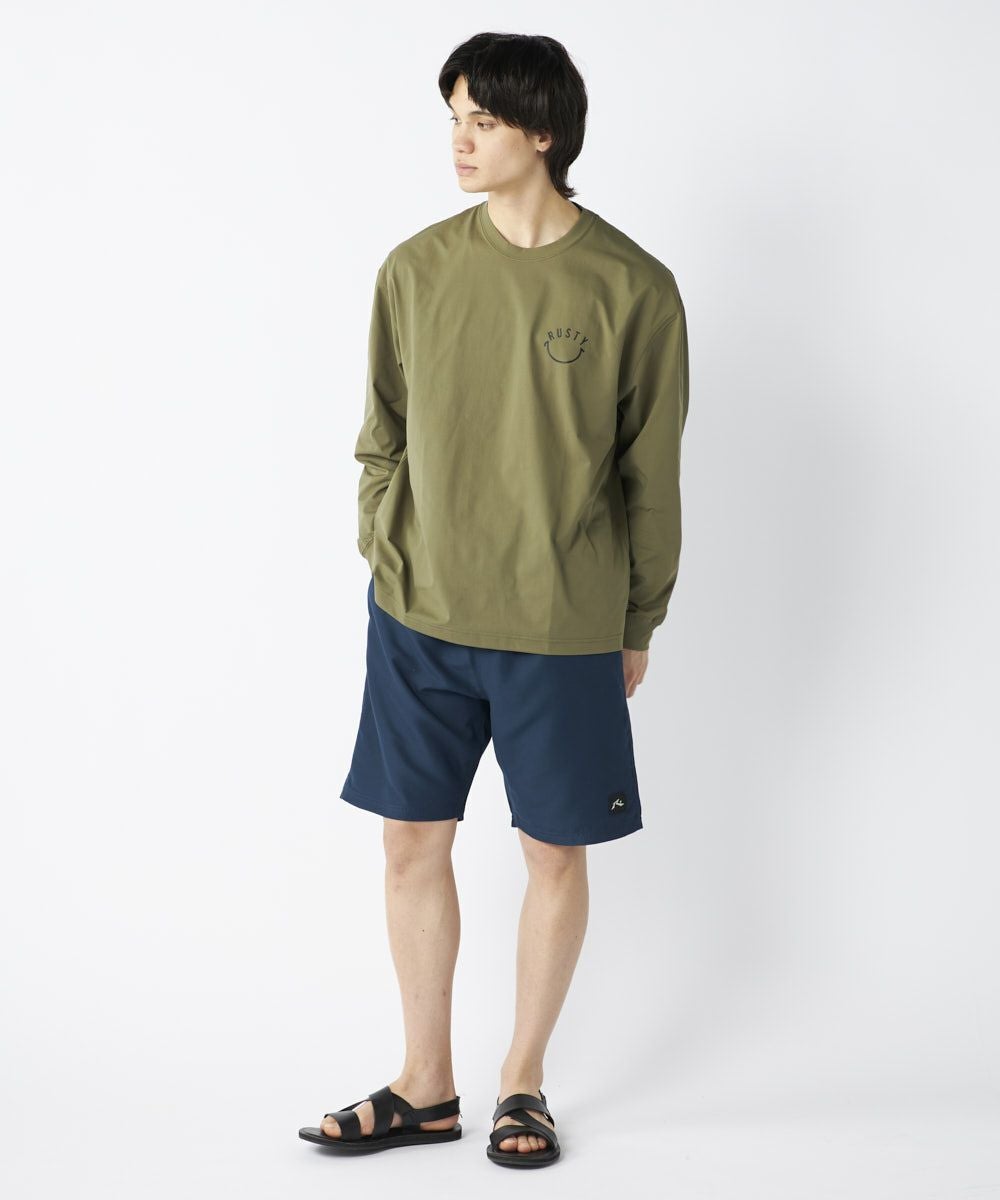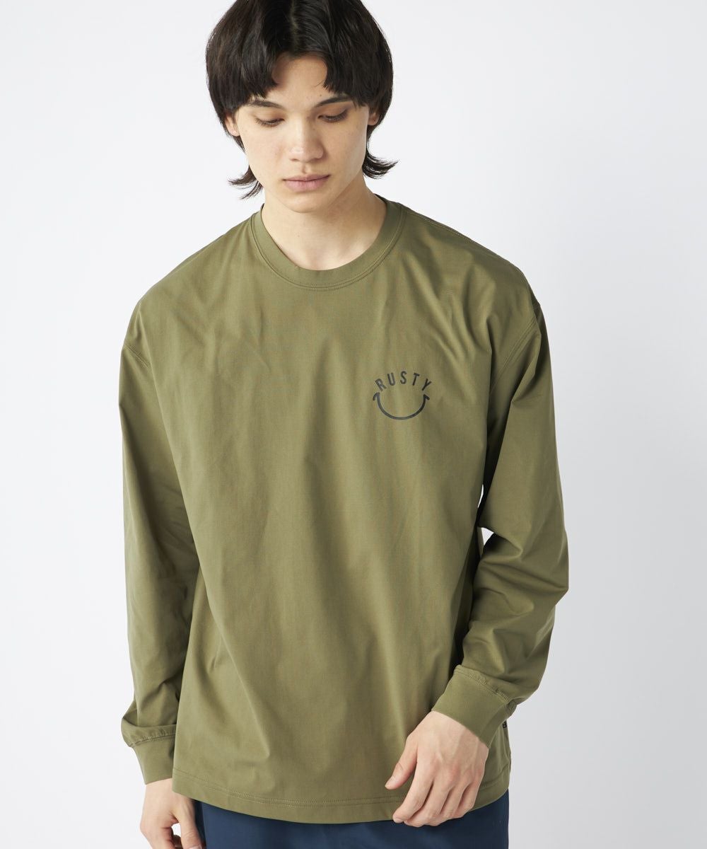 ゆったりとしたシルエットで快適な着心地を実現し、長袖なのでラッシュとして日焼け対策にはもちろん、デイリーユースはもちろん、スポーツやアウトドアシーンにもおすすめのアイテムです。