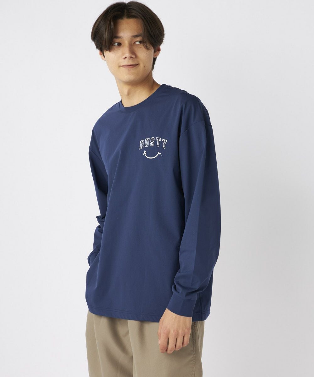 水陸両用メンズUVロンT。ペアテックス素材を使用し、定番のニコちゃんのカレッジデザインが新登場。