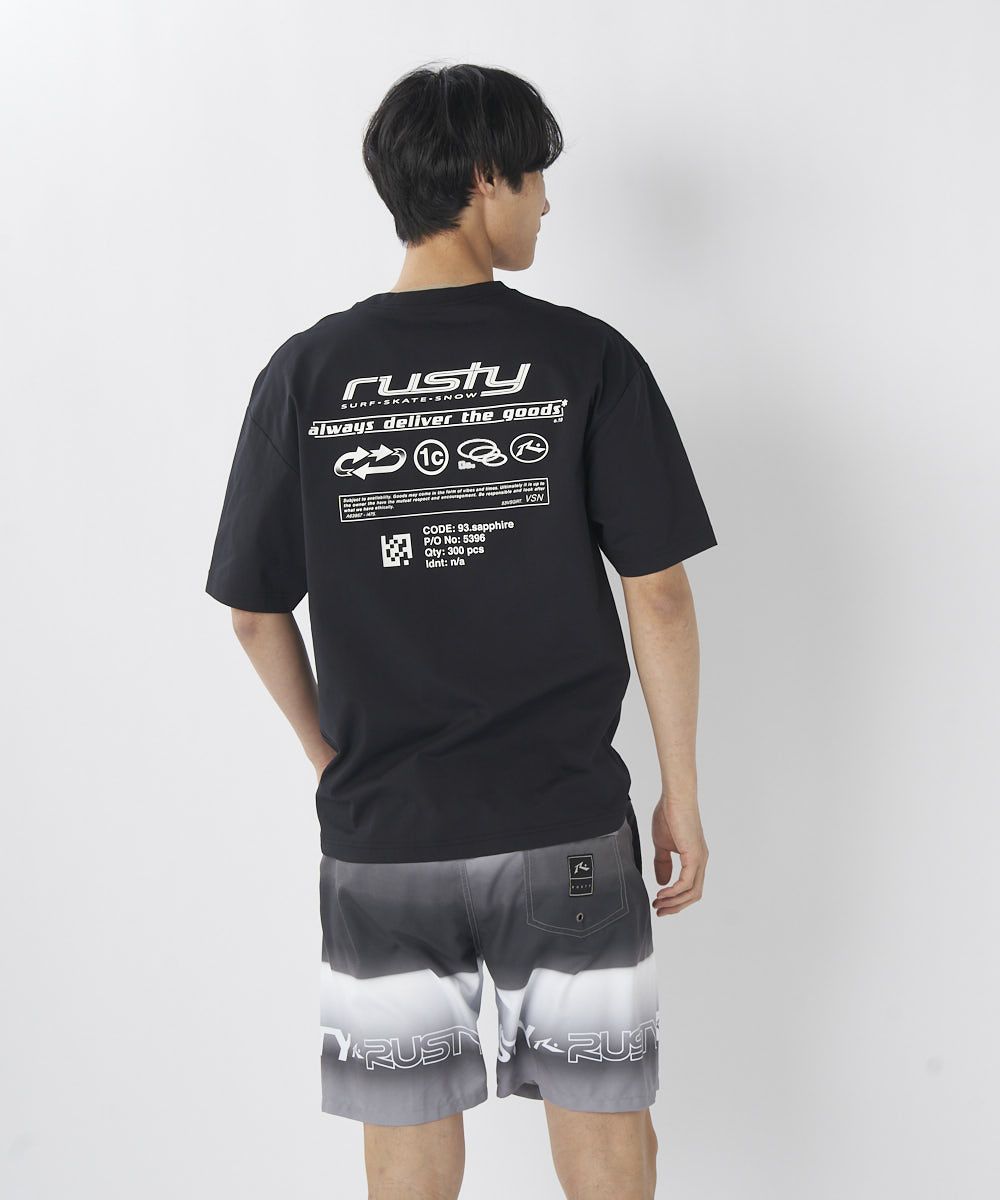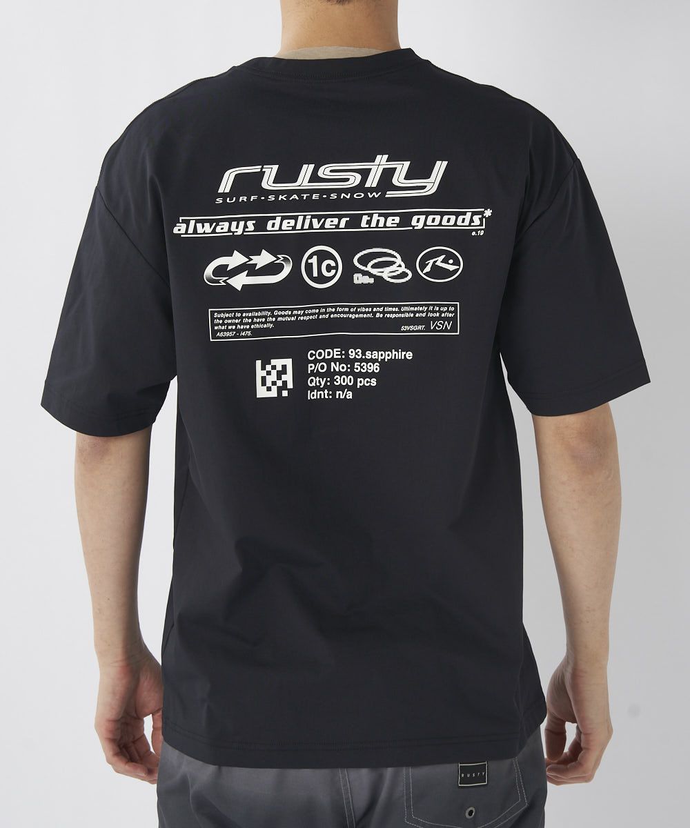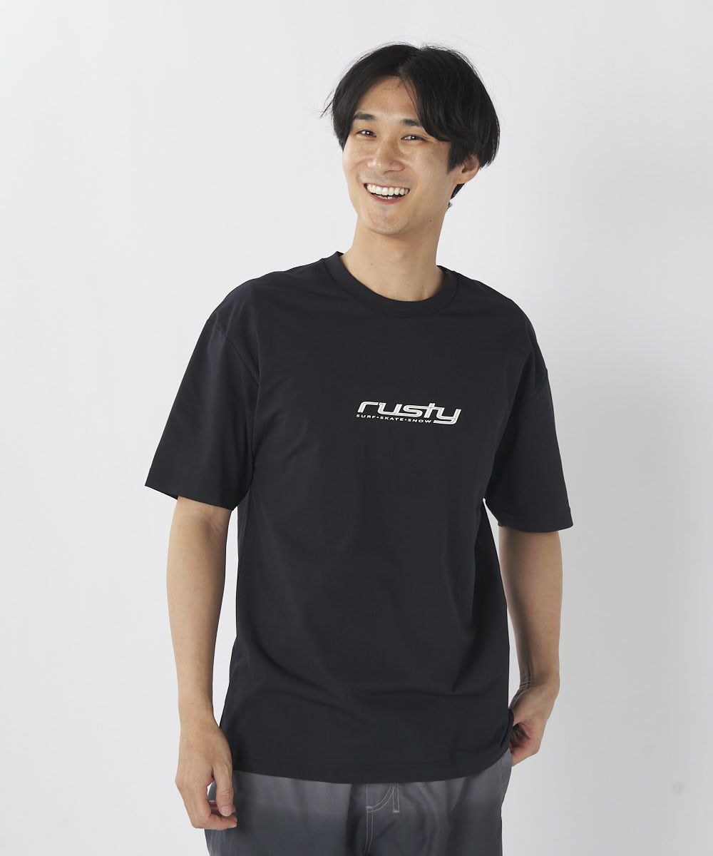 メンズUV Tシャツ。ペアテックス素材を使用し、流行のスポンサードグラフィックが特徴的でかっこいい。 バックスタイルもアイコンが並んでてかっこいいデザインに。