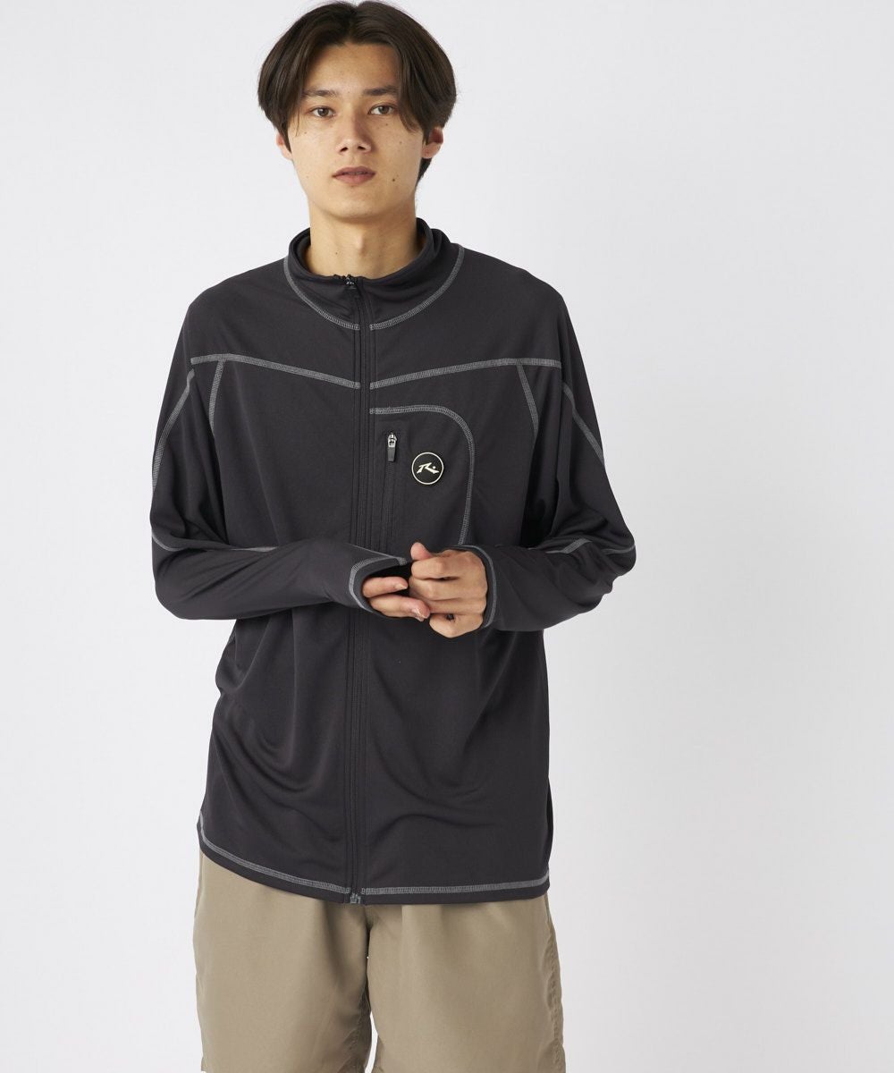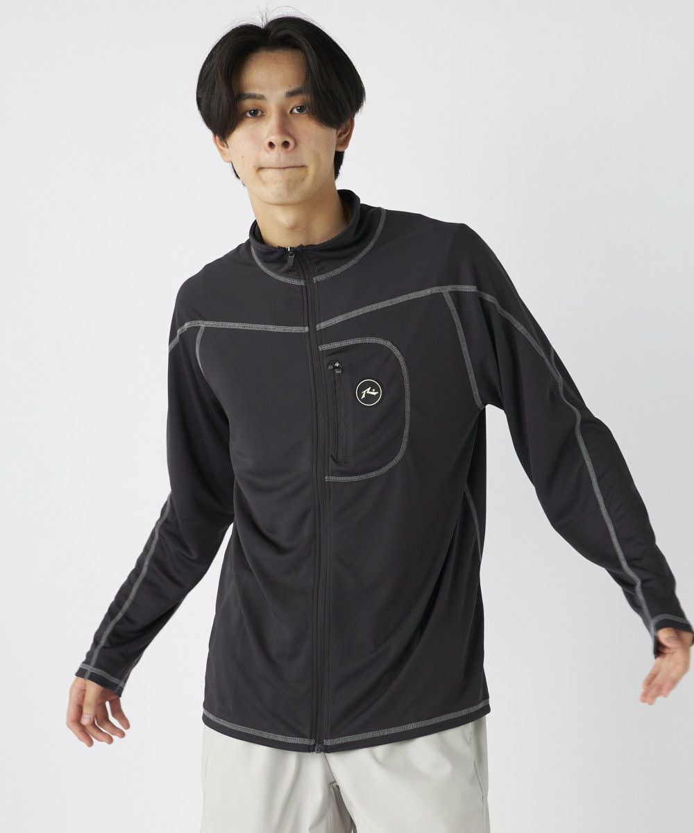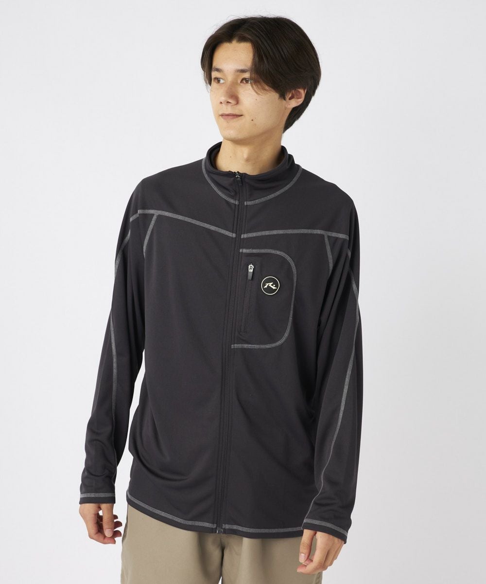 メンズ UVメッシュ立ち襟長袖ジップTシャツ