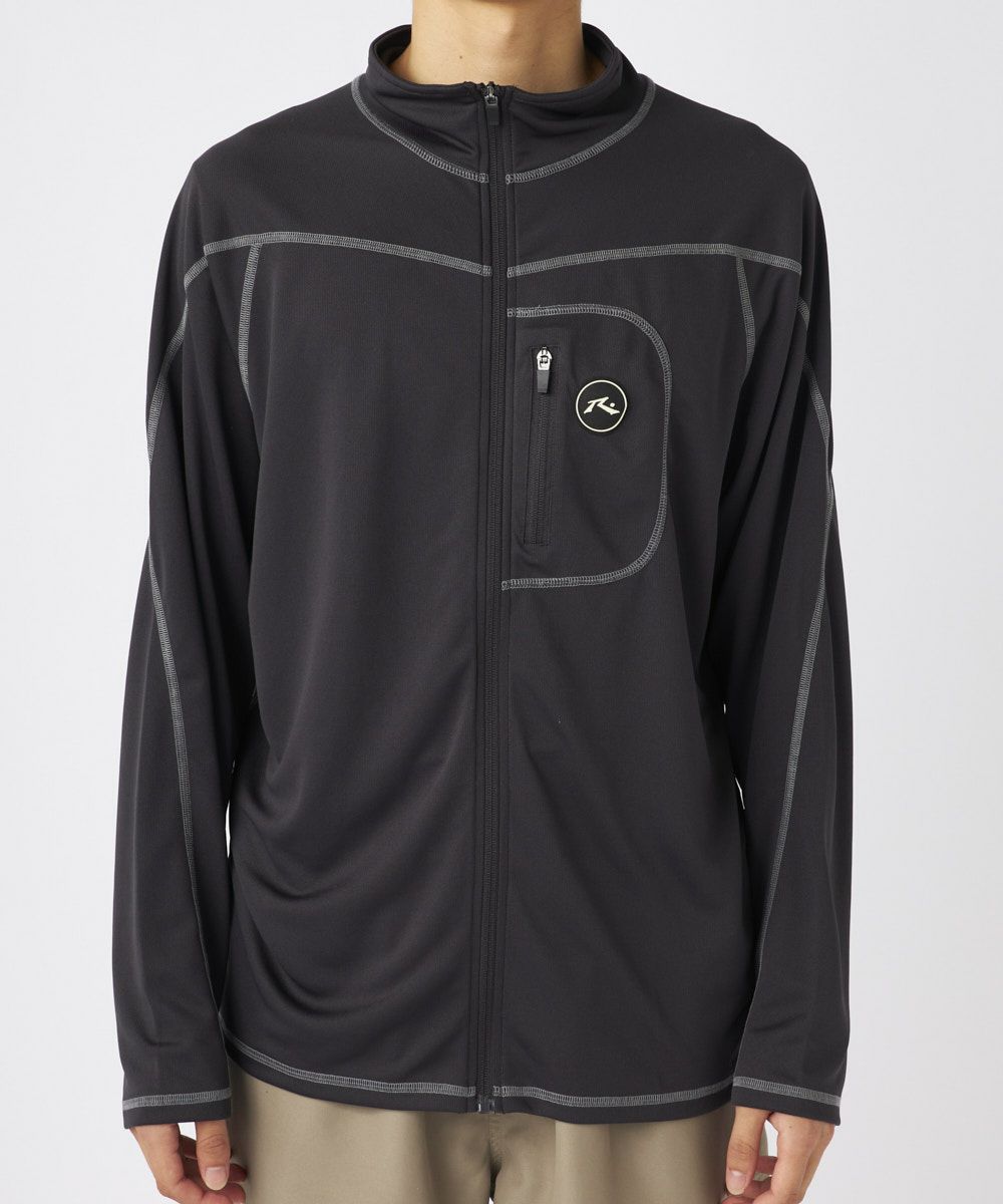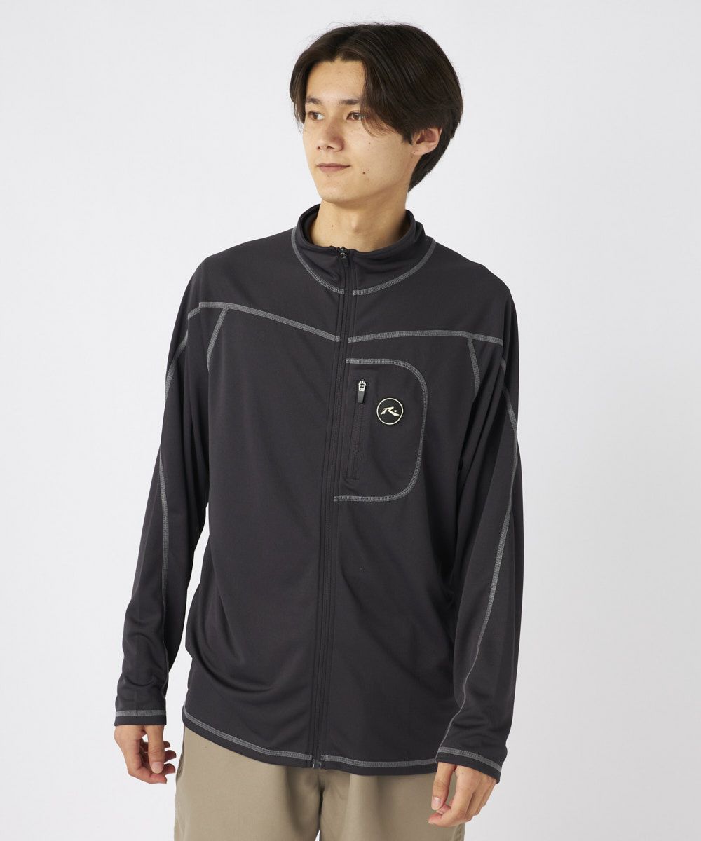 UVメッシュ長袖ジップTシャツメッシュ素材を使用し、スタンドカラーが特徴的な流行のデザイン。 UVカット機能を備えており、通気性と快適さを兼ね備えた一枚です。