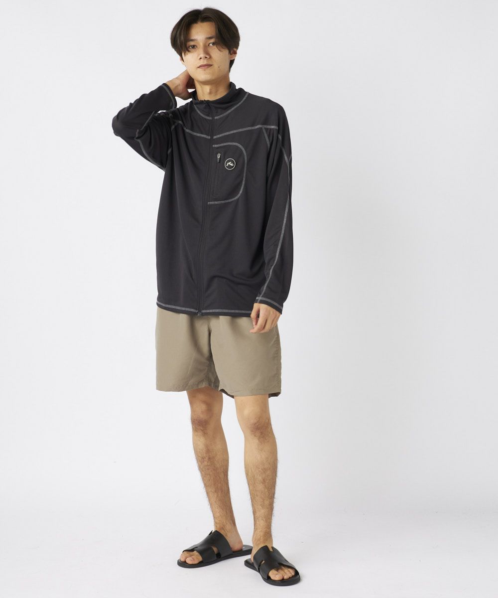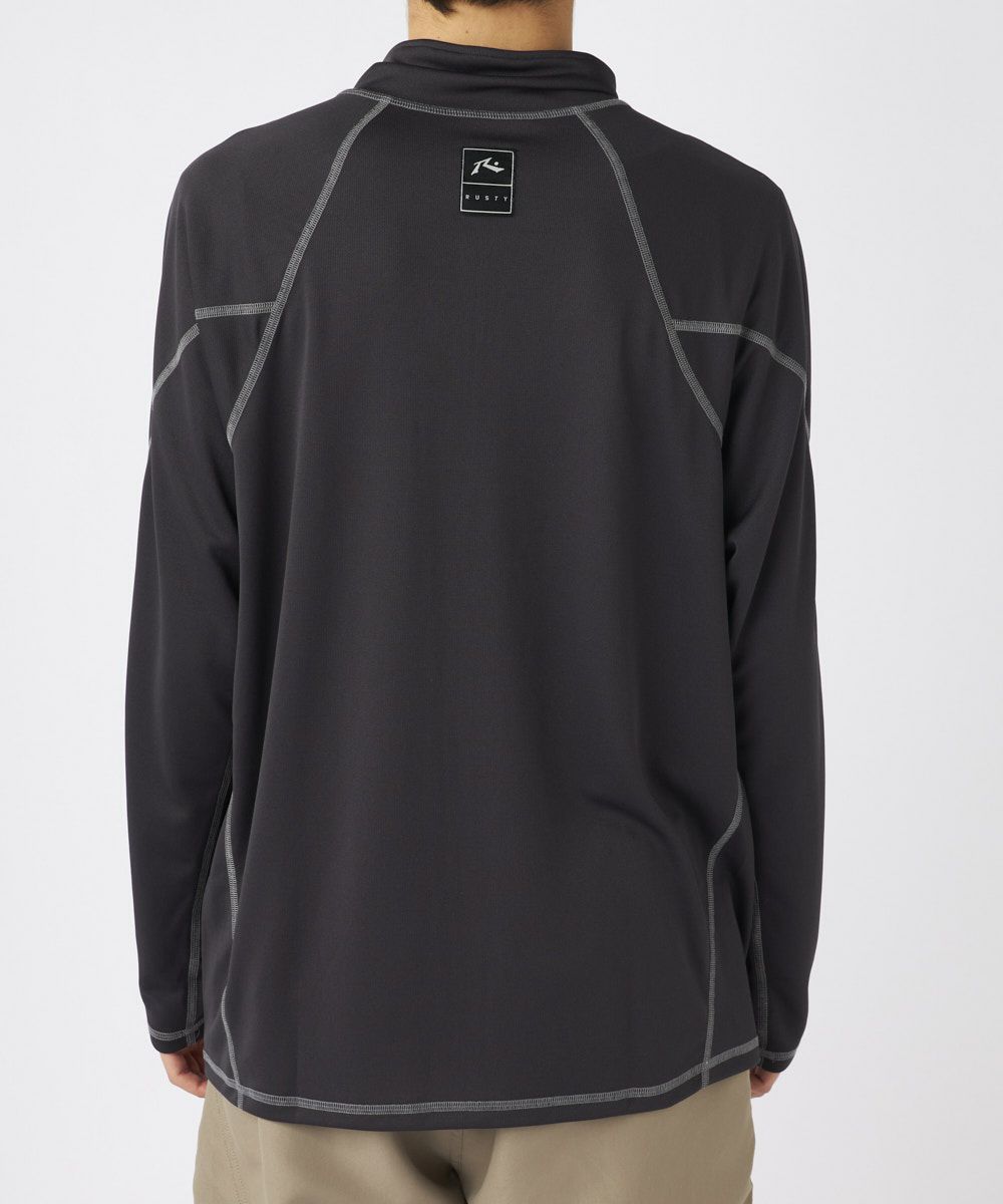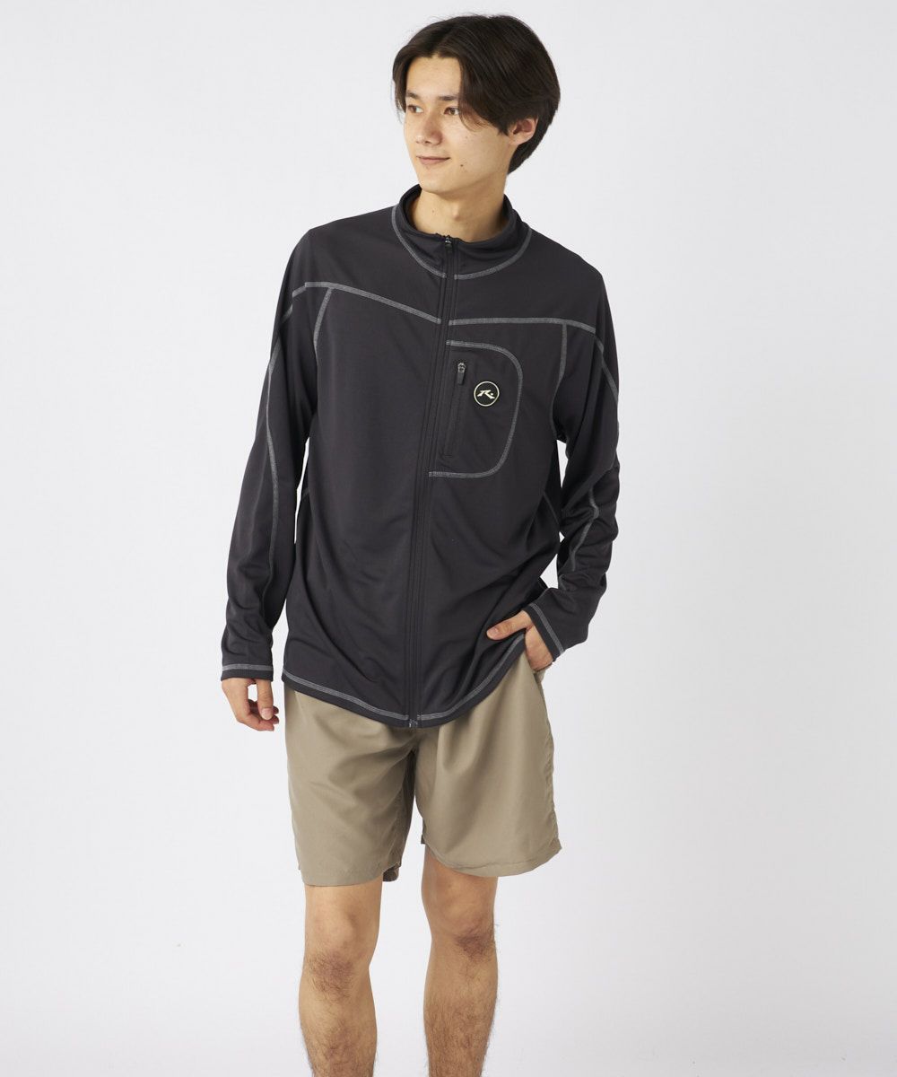メンズ UVメッシュ立ち襟長袖ジップTシャツ