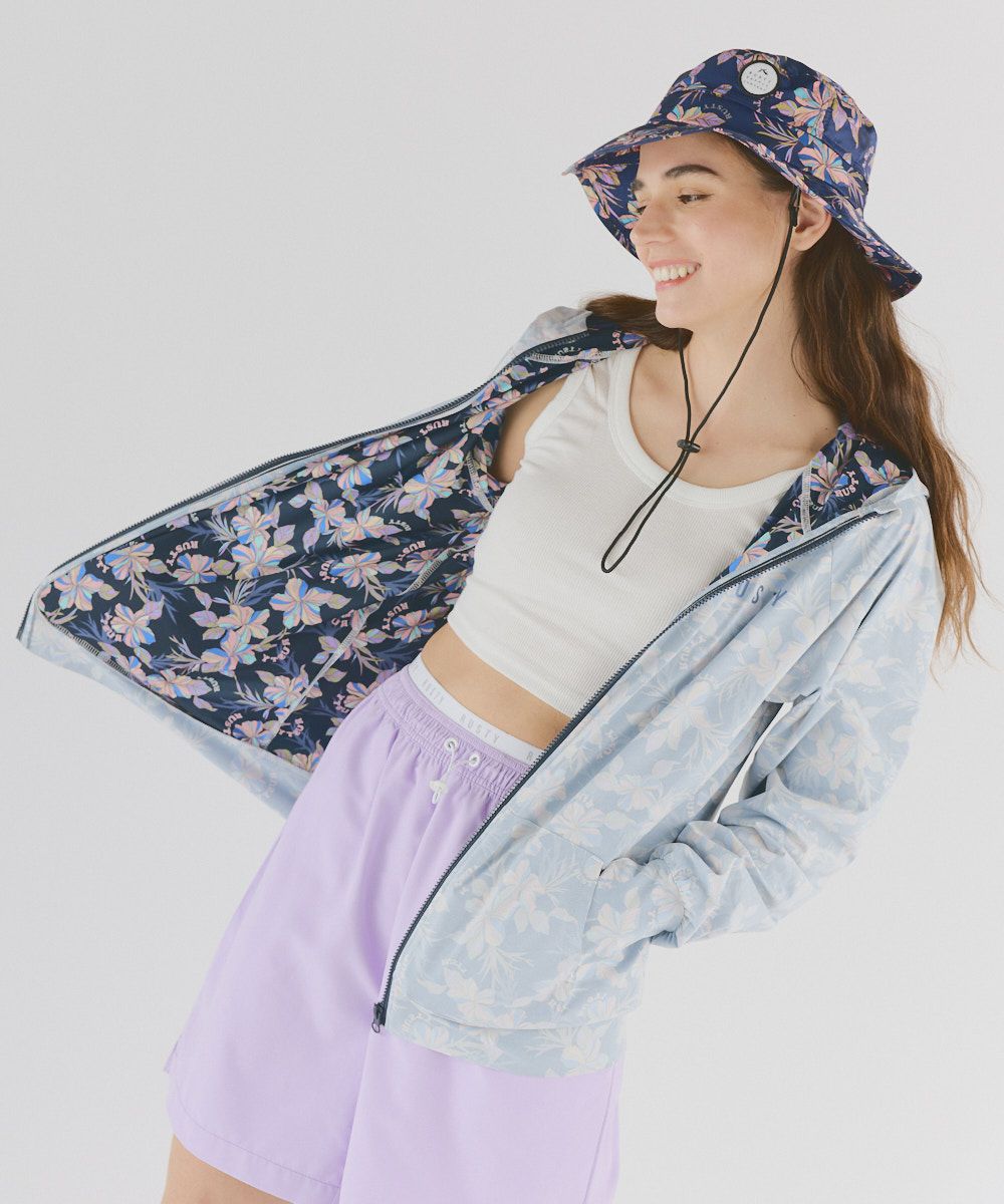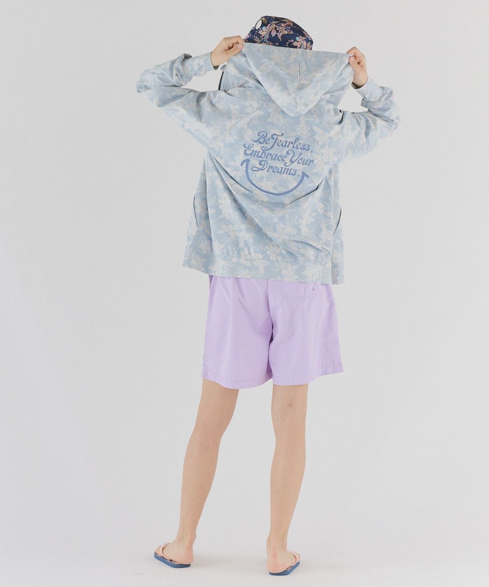 ペアテックスのトロピカル柄のUVパーカーです。柄を裏使いしており、とってもおしゃれなUVパーカー。さりげない柄で着回しもしやすく、ジップをあけた時に柄が見えるのも可愛い!!
