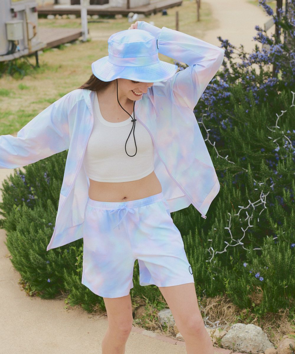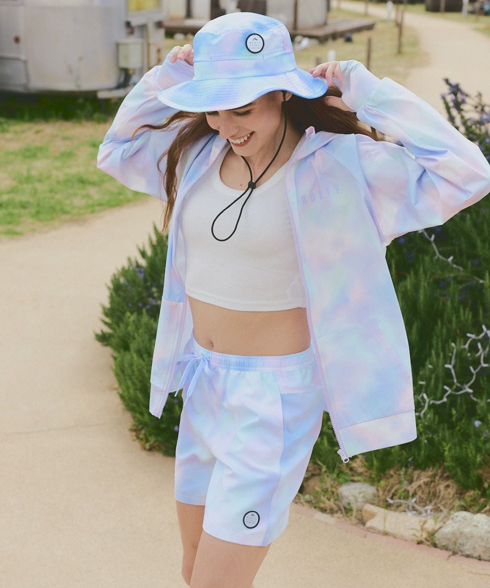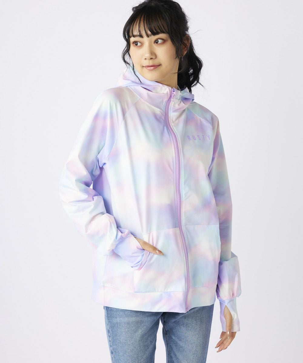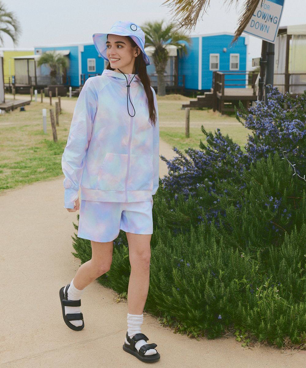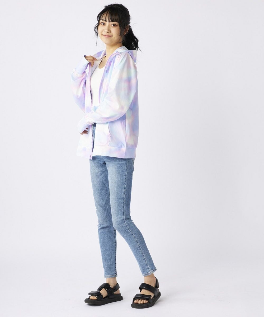 レディース 《シワになりにくい・軽量速乾・UPF50+≫ペアテックス 水陸両用 タイダイニコちゃん UVジップパーカー
