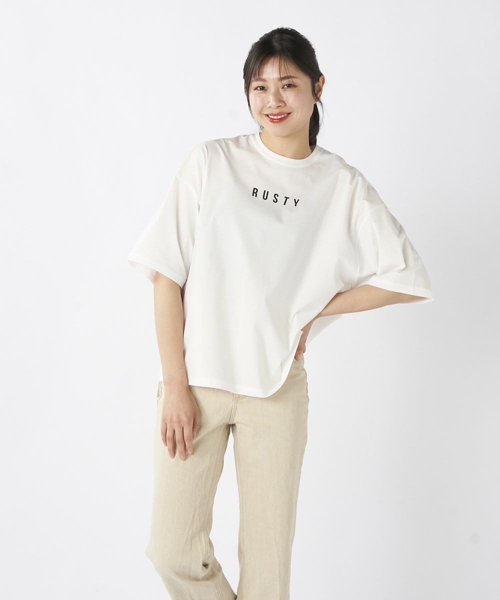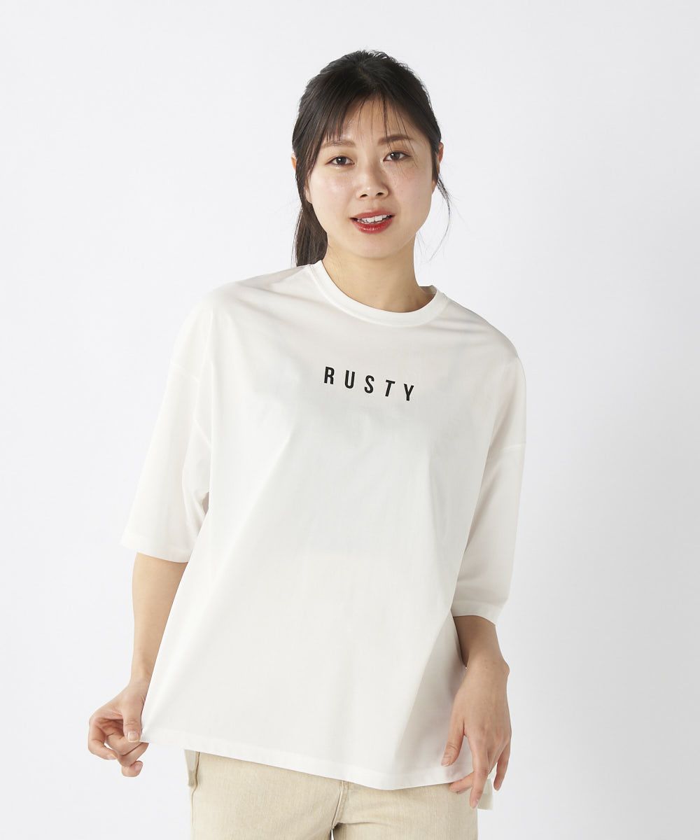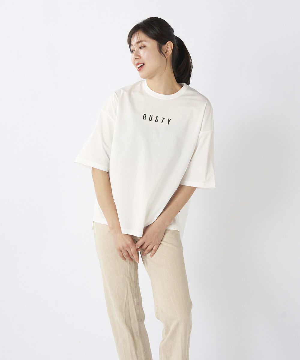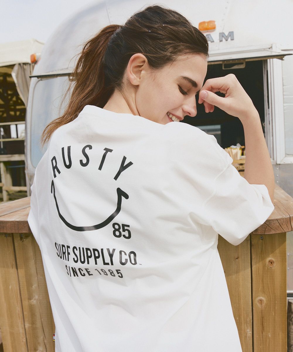 フロントはRUSTYのロゴがシンプルにはいっており、バックにはニコちゃんのRUSTYロゴが特徴の1枚です。