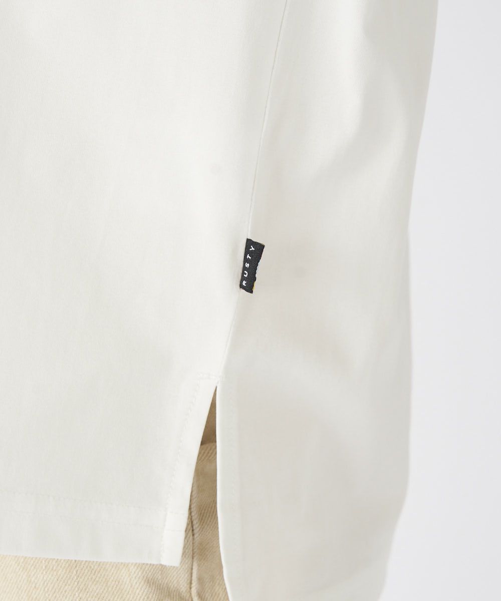 着丈が前と後ろで差があるので立体的におしゃれなシルエットに!ボードショーツやスカート、デニムなどボトムにもインしやすく便利!
