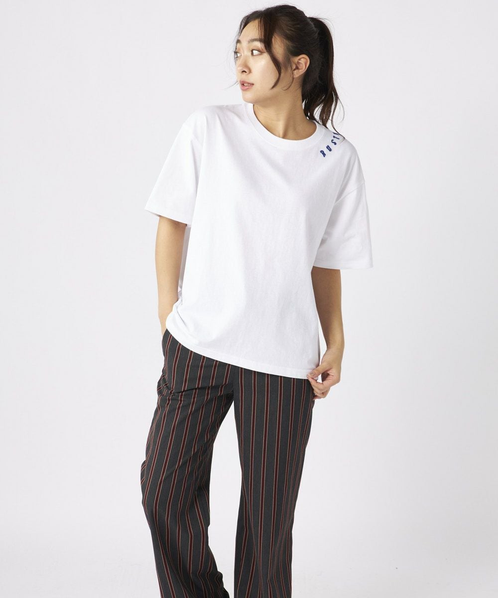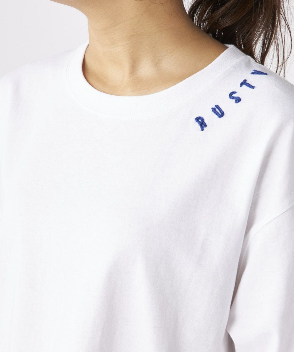 フロントの首元にラウンドにさりげないチェーン刺繍のロゴが入っているのがポイント!