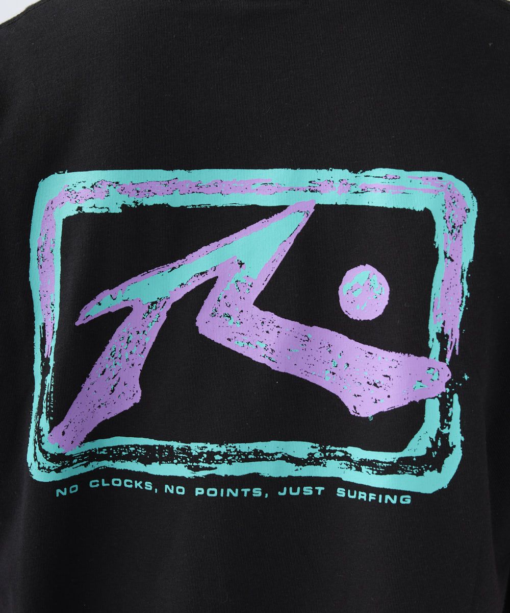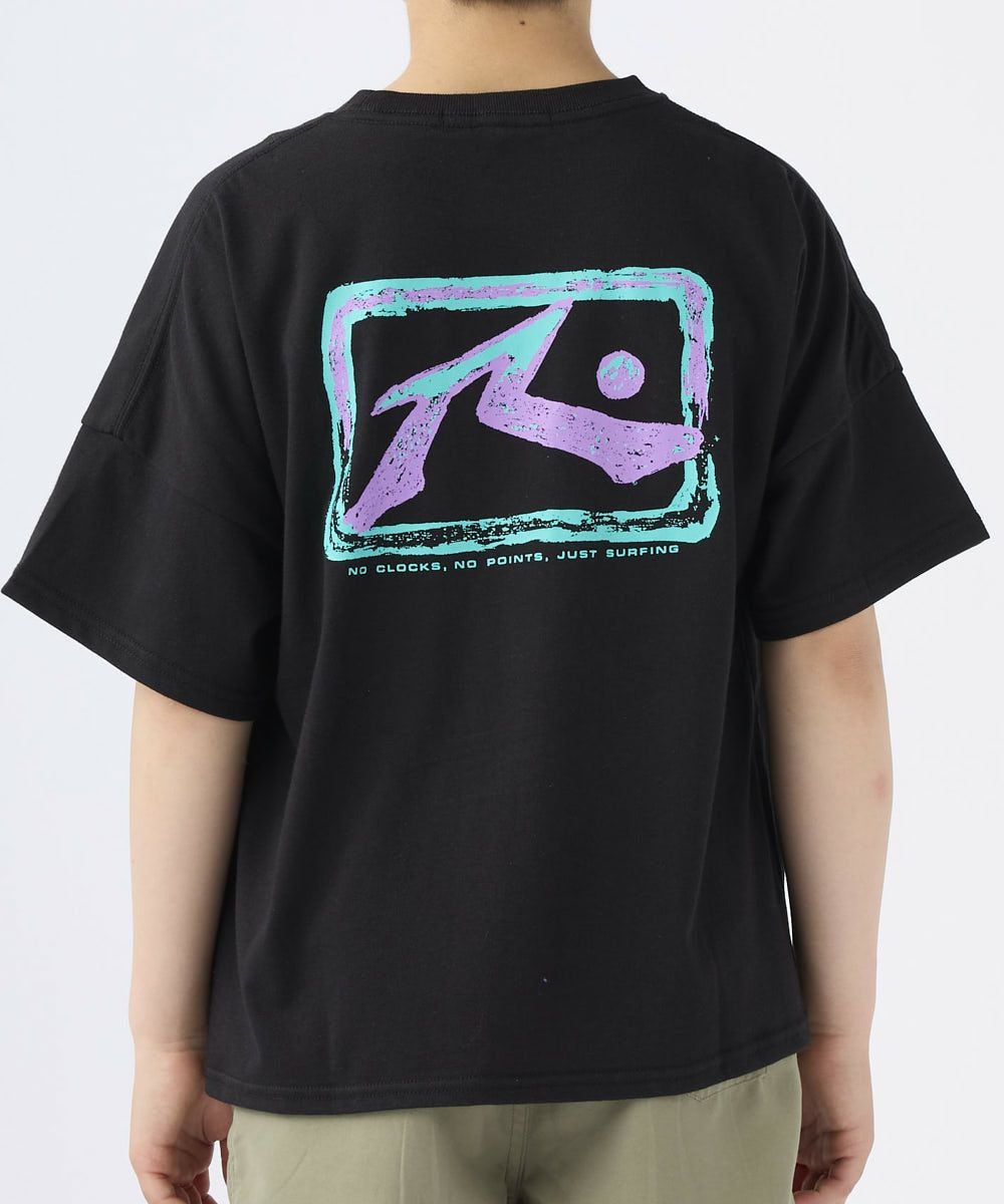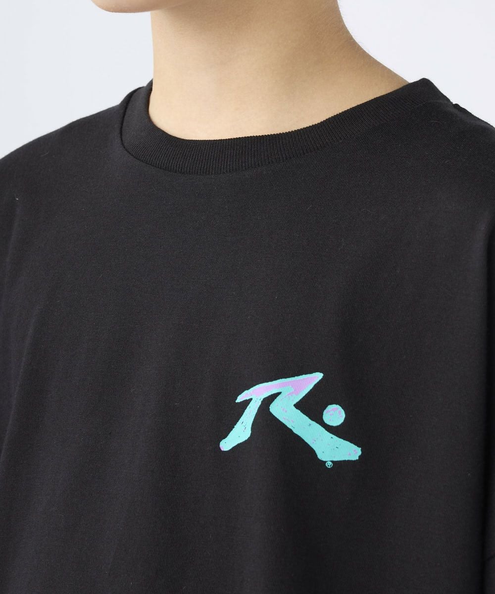 ボディの素材は、オーガニック綿70%とリサイクルポリエステル30%を混紡し、 吸汗速乾と UVカット機能を兼ね揃えた未来につなぐサスティナブル素材を使用しています。 RUSTYのR-DOTアイコンを手書きのサイケデリックカラーで仕上げています。