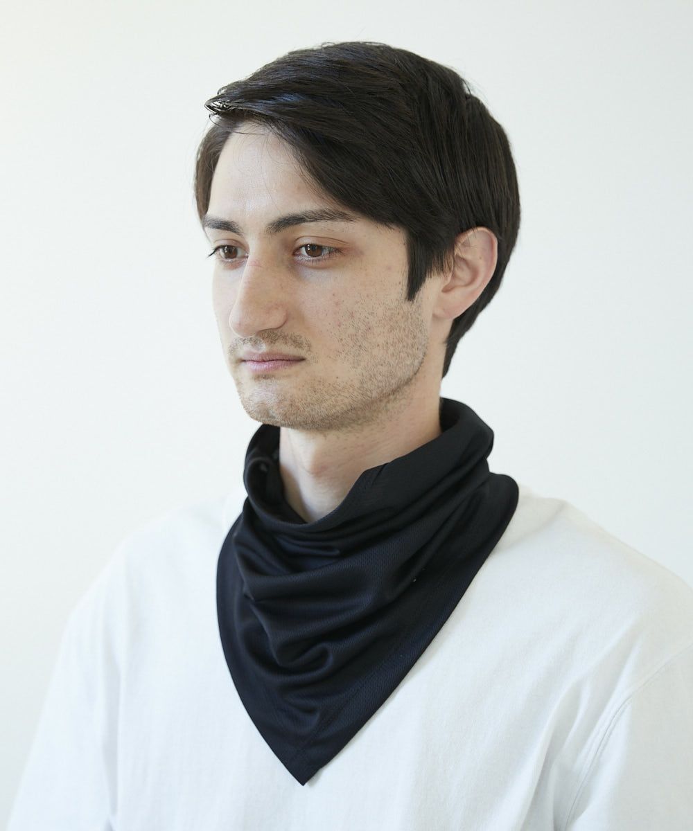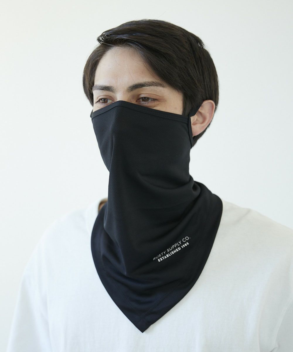 バンダナ型のフェイスカバー。耳にループをかけることによりズレにくくなり運動時の着用も可能です。