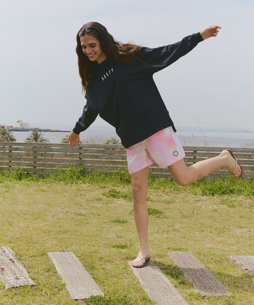 柔らかな色のタイダイ柄が特徴のボードショーツ。涼しげな雰囲気を演出し、爽やかでナチュラルな印象を与え、リラックス感のあるスタイリングにぴったりです。