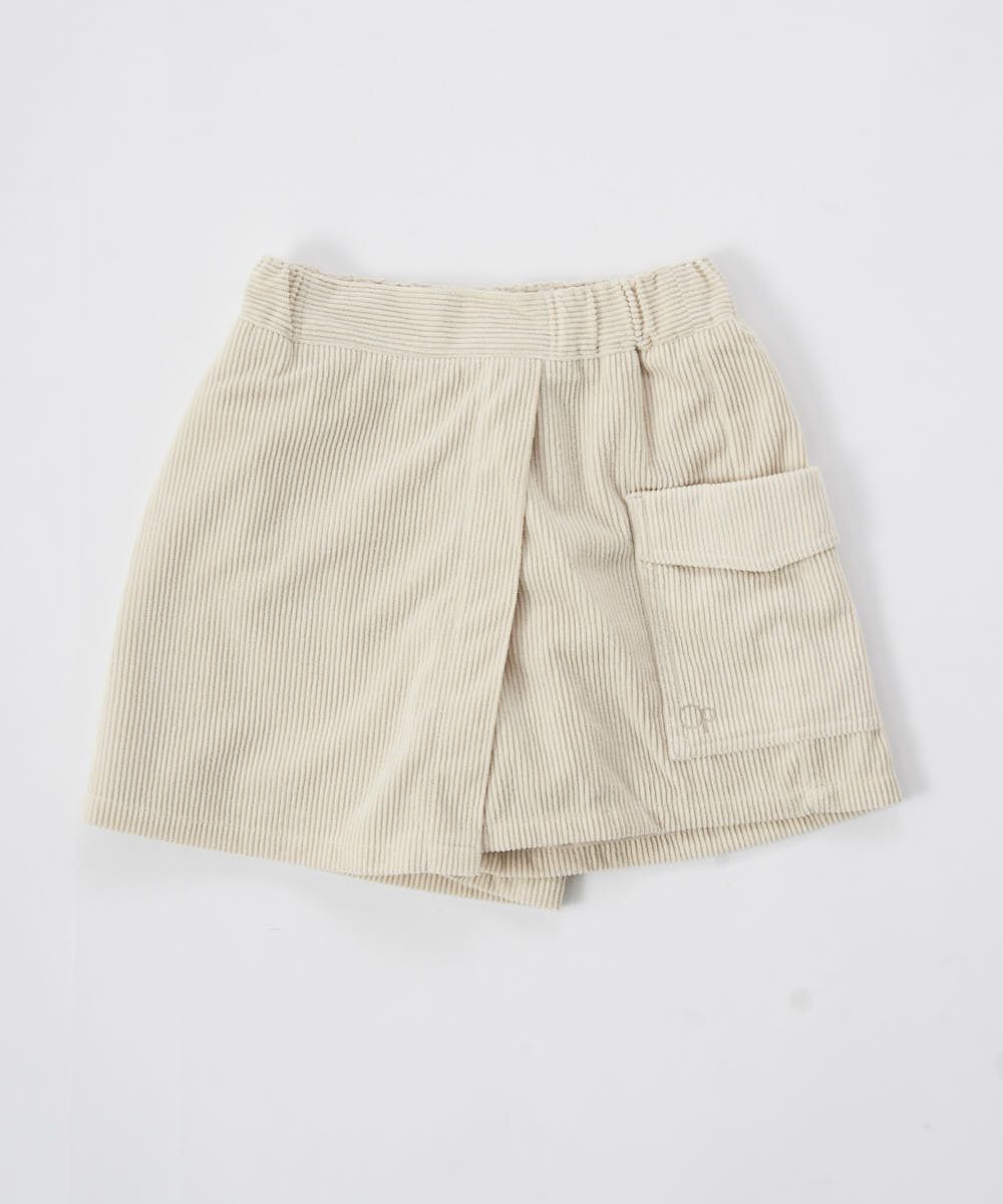 アクティブに使える巻きスカート風のキュロットパンツ。コーデュロイ曽合で秋冬らしいスタイリングが楽しめ ます。