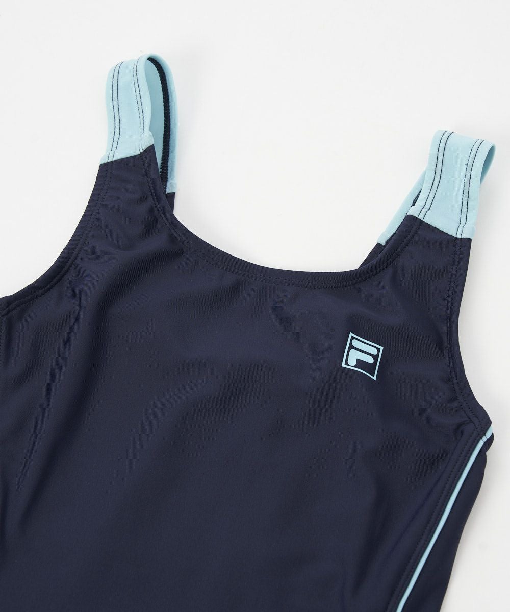 キッズ スクール水着/ネイビー×サックス(キュロットワンピース)