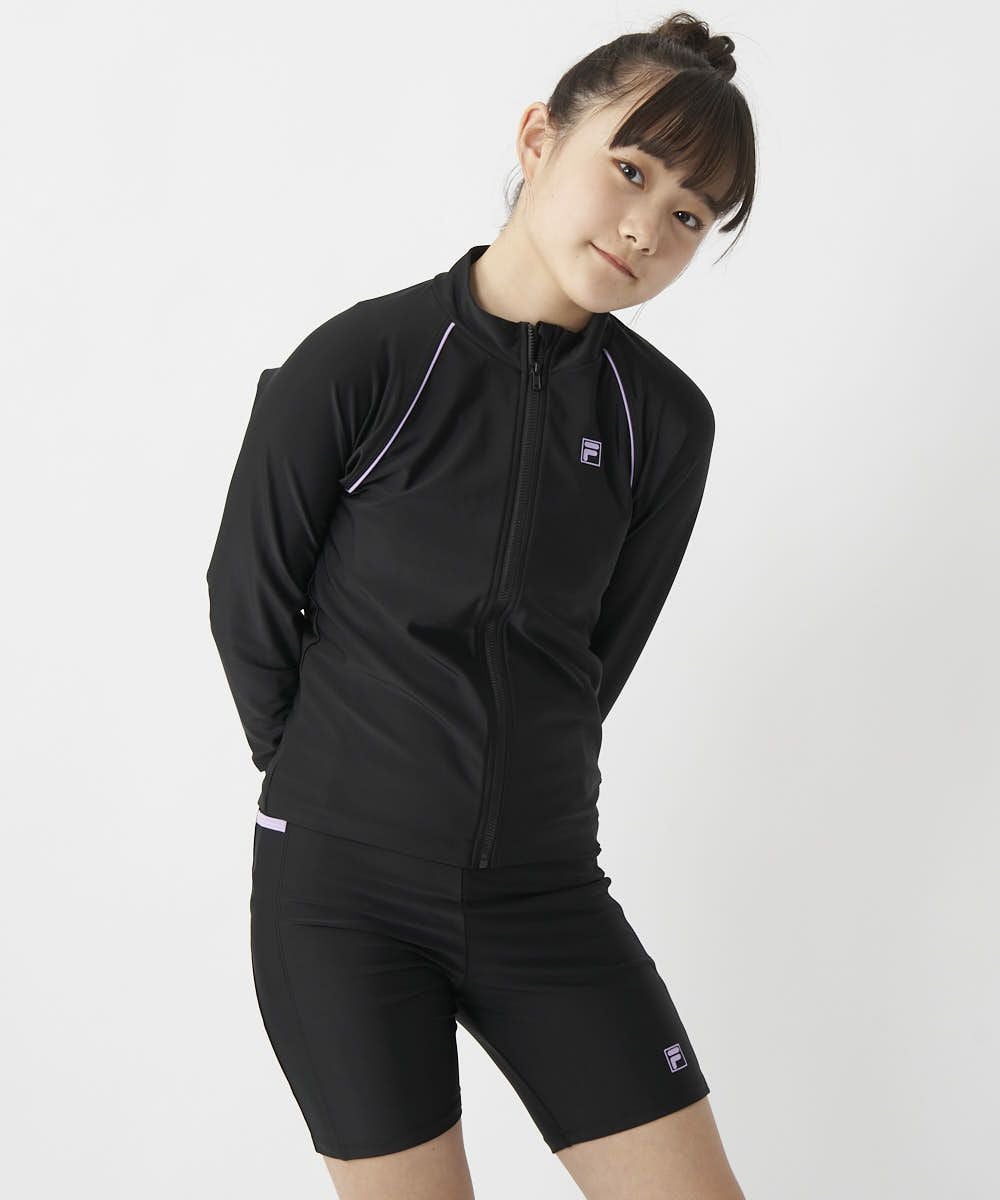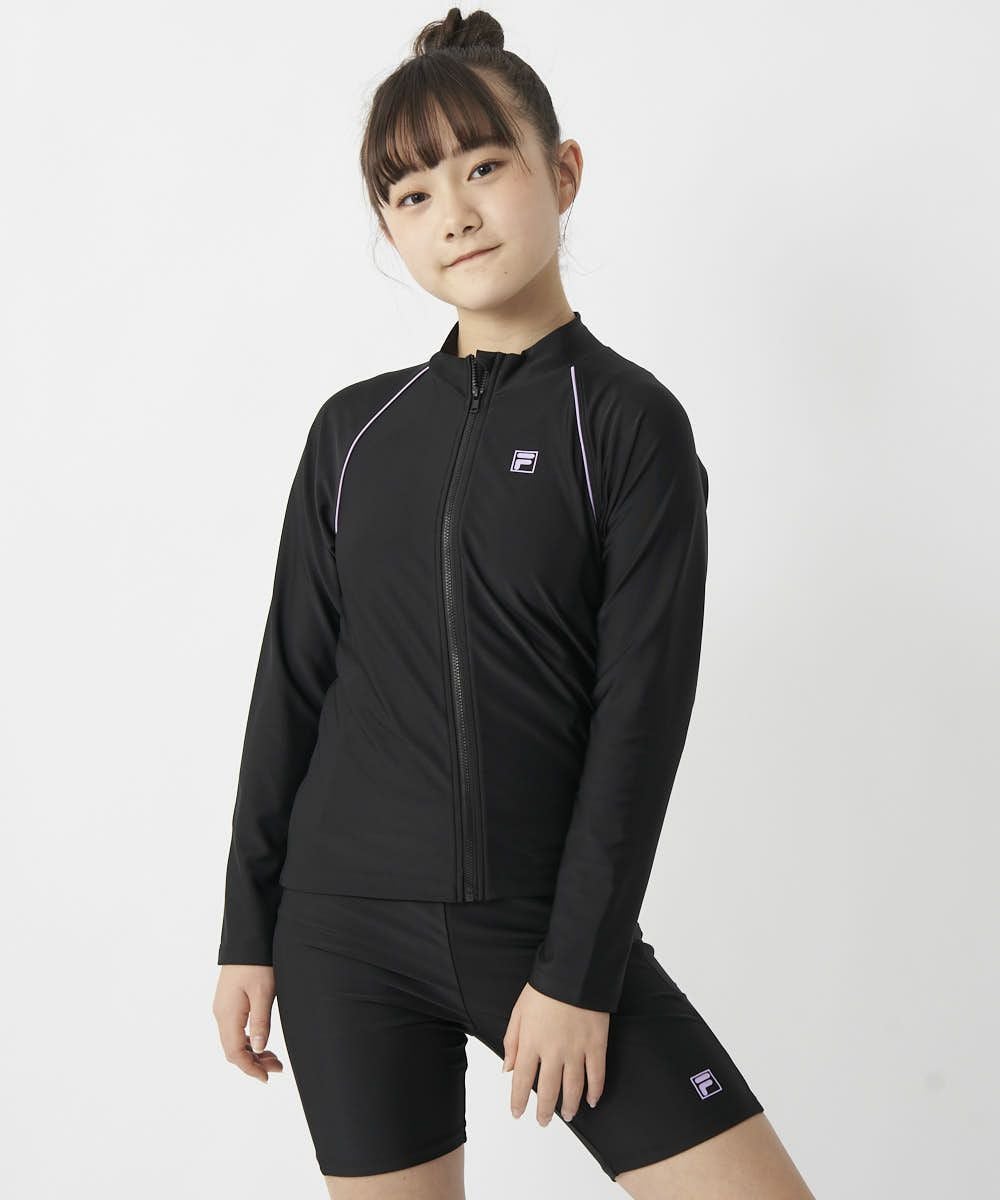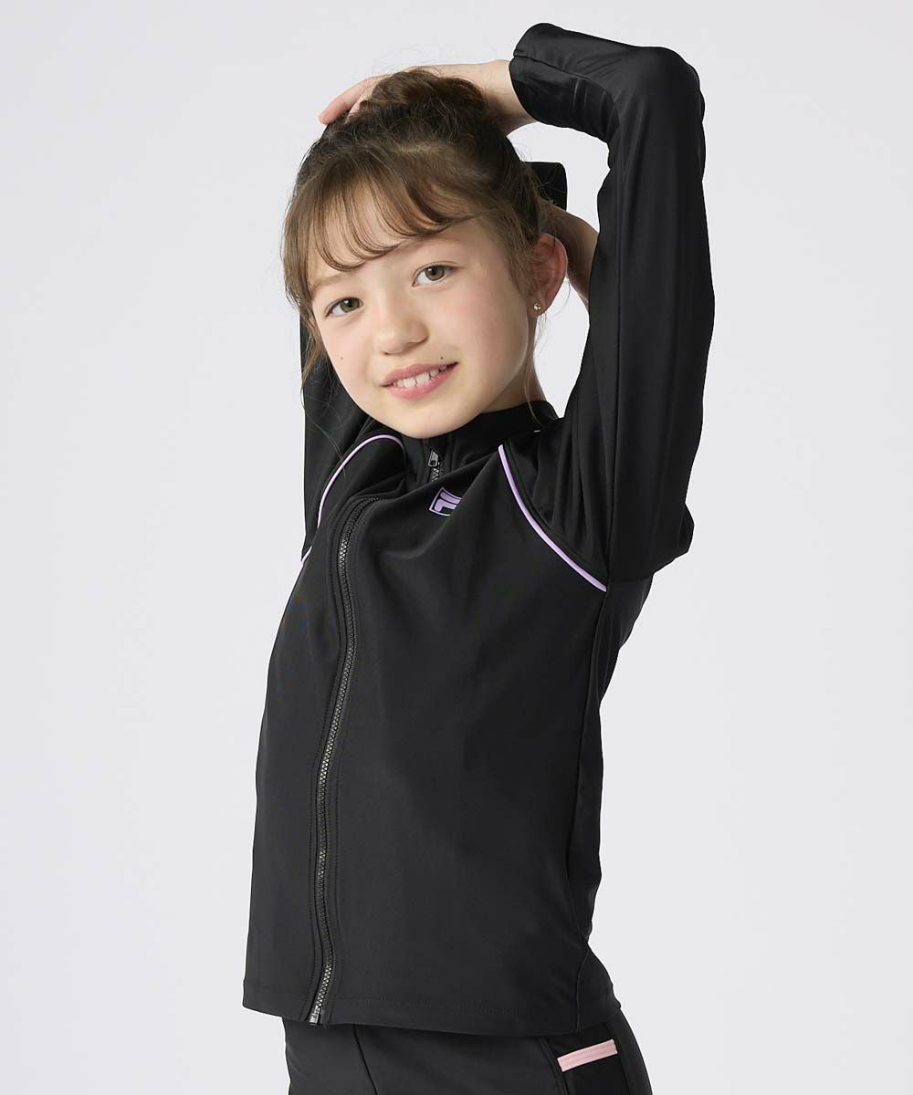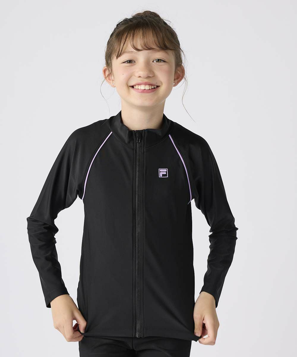 キッズ 長袖フルZIPラッシュガード/ブラック×パープル