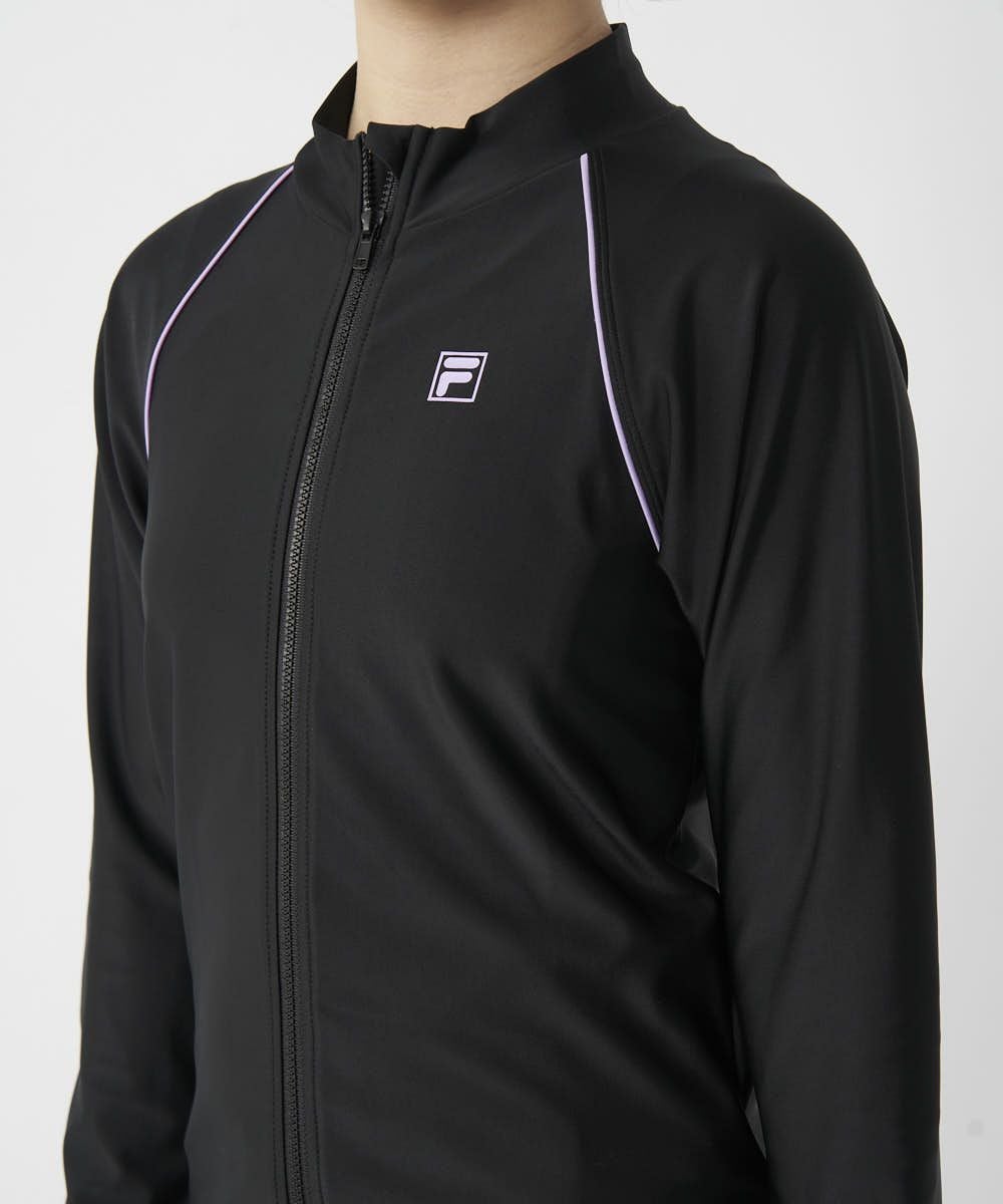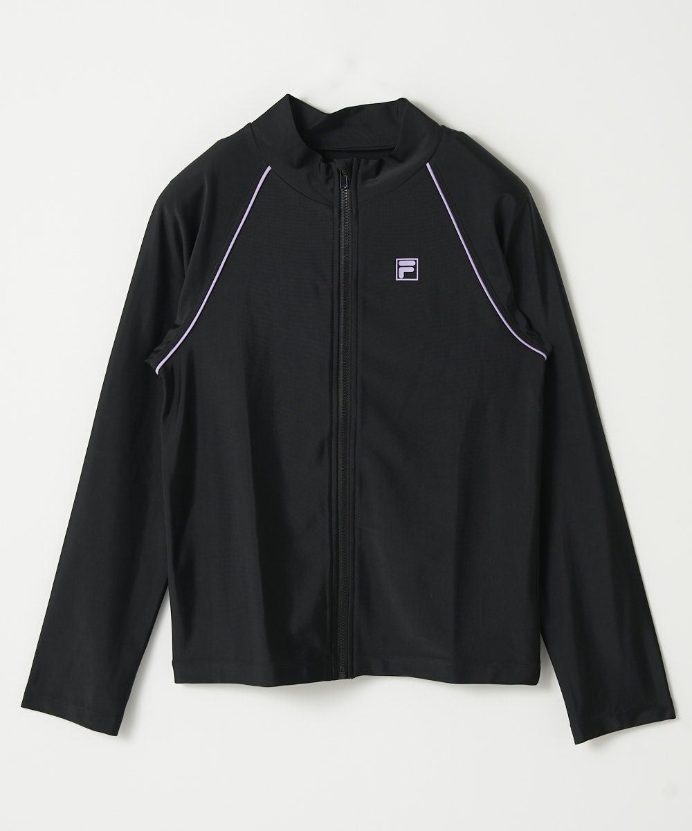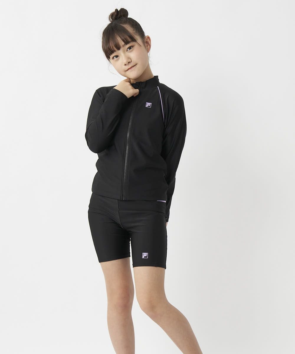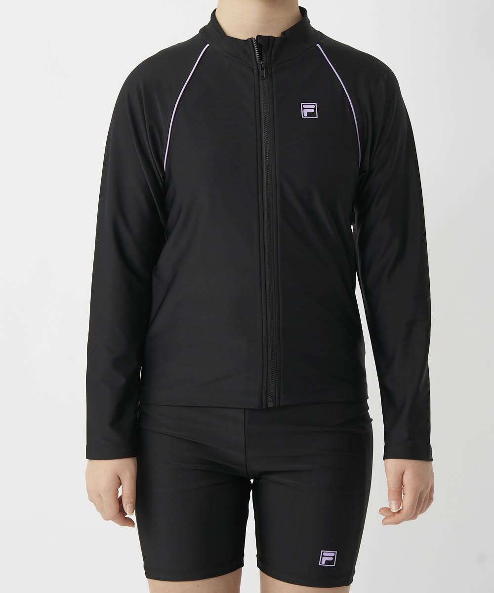 キッズ 長袖フルZIPラッシュガード/ブラック×パープル