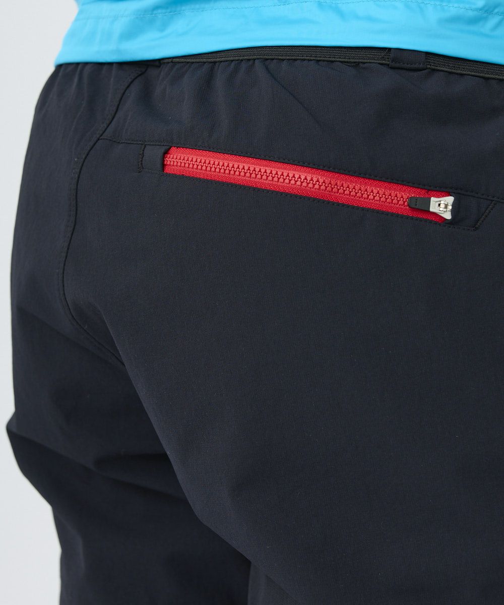 あらゆる動作を快適にする特殊な縫製パターンを採用。4WAYストレッチ生地と相まって着用時のストレスを感じさせません。さらにウエストゴムのベルトレス仕様でフィット感を高めました。カラビナで細かな道具を装着できるようベルトループは残し、使い勝手の良いジップポケットを配置。撥水加工を施すことでアウトドアシーンにおける理想のメンズウェアが完成しました。