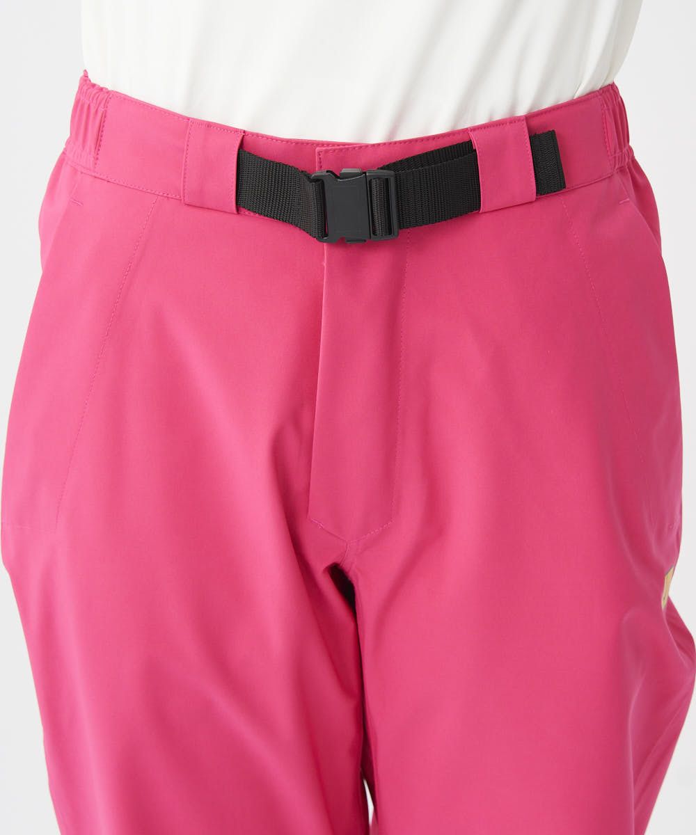 小松マテーレが独自に開発した特殊ポリウレタンフィルムの最上級グレードに位置する高耐水圧・高透湿ラミネートファブリック『SAITOS®-Z』を採用。ウエストは調整しやすいベルト付き、裾はベルクロ仕様でブーツインしやすい仕様に。本格的な雨の中での長時間の着用にも耐えられる耐水圧20000mm以上/透湿度10,000g以上という機能性に加え、防風性・防水性にも優れたアングラーにとって必需品の全天候型レディースパンツ。