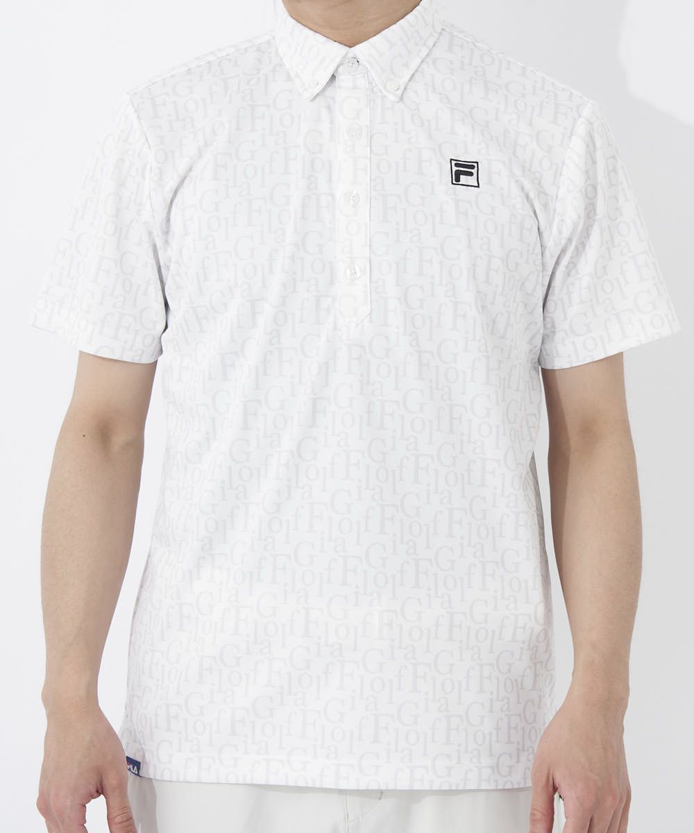 オリジナルの総柄デザインを施した半袖ポロシャツ。左胸にはワンポイントでFILAのロゴ刺繍が施されています。合わせるボトムスを選ばないルックスなのも嬉しいポイントです。