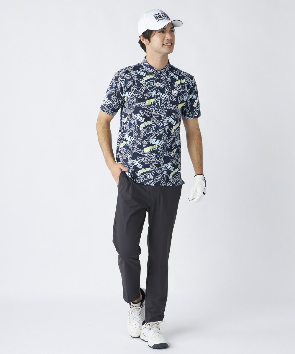 コミック調のデザインが特徴のポップなゴルフシャツです。配色もオシャレなので、ベーシックなボトムスに合わせるだけでおしゃれな印象に!