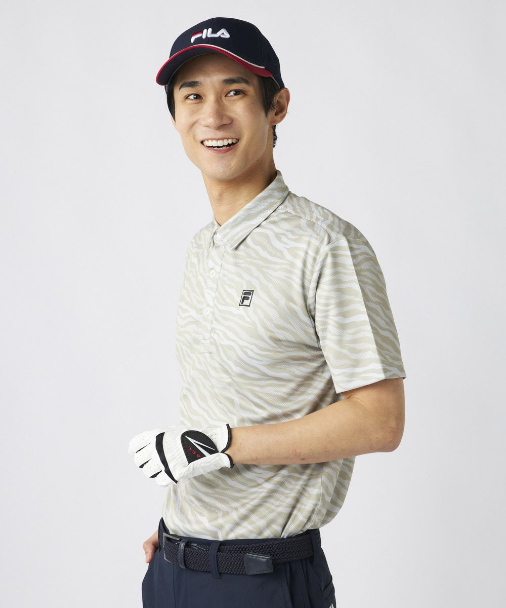 ゼブラ柄風の柄が特徴のオシャレなゴルフシャツです。ベーシックカラーからコーデのポイントになるグリーンと、お好みに合わせてお選びいただけます。ベーシックなボトムスとの相性のよいポロシャツです。