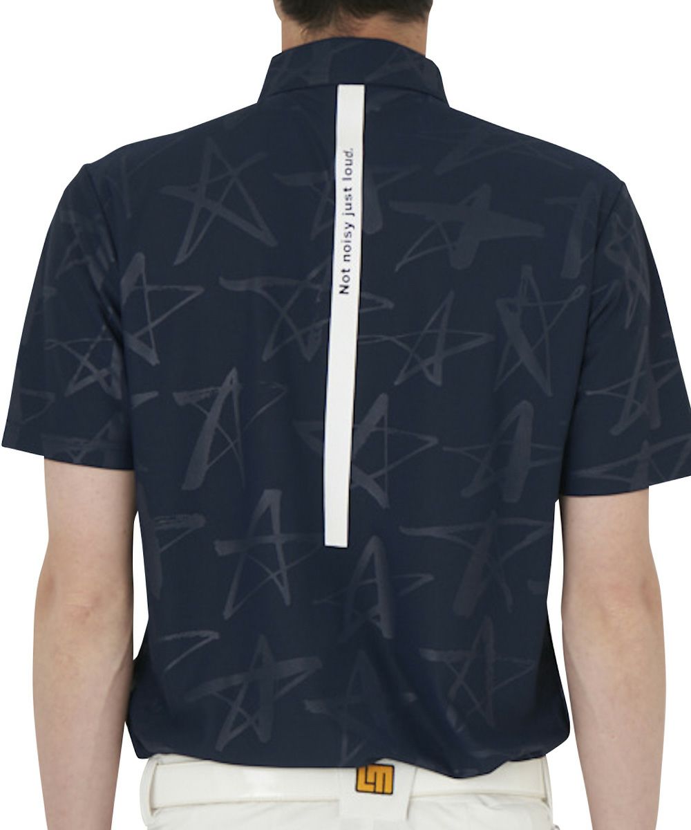 メンズ 半袖ポロシャツ シューティングスター柄エンボス ネイビー 吸汗速乾 UV
