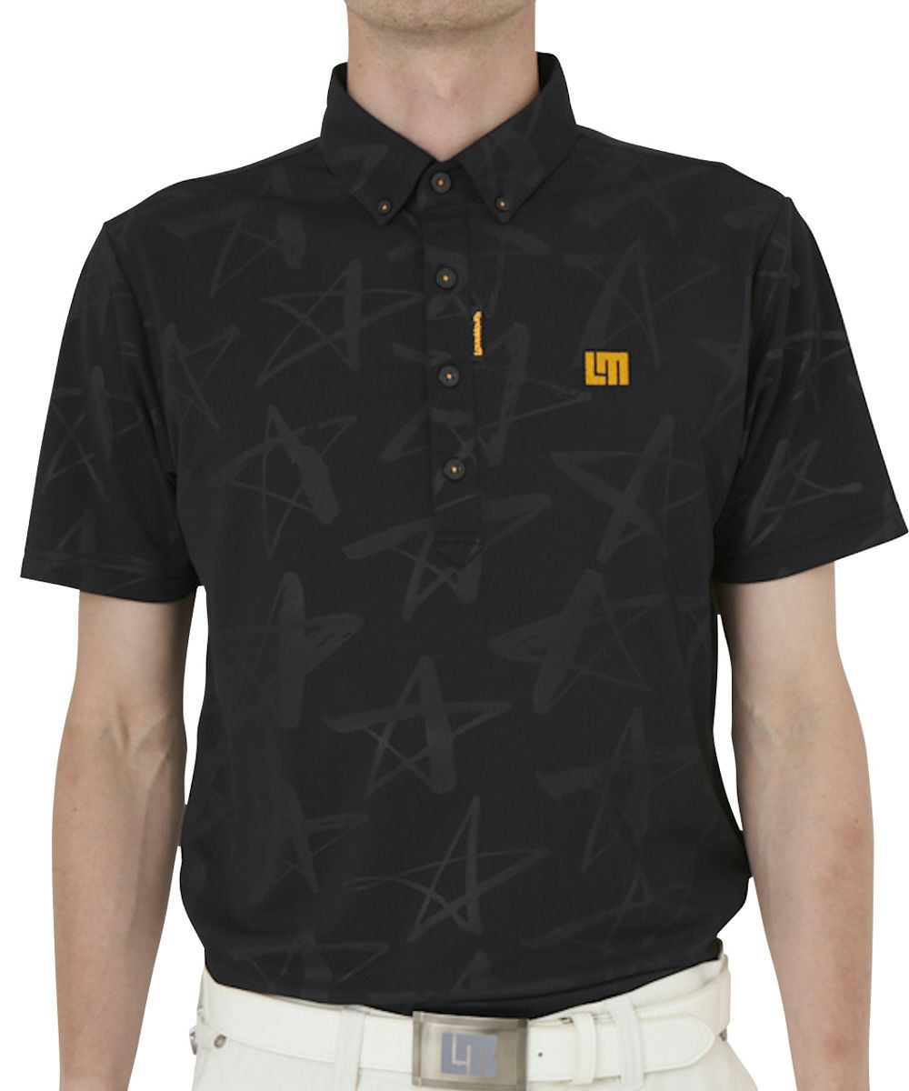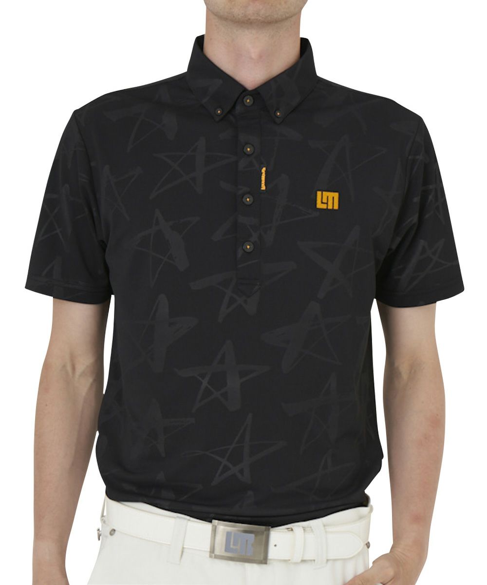 メンズ 半袖ポロシャツ シューティングスター柄エンボス ブラック 吸汗速乾 UV