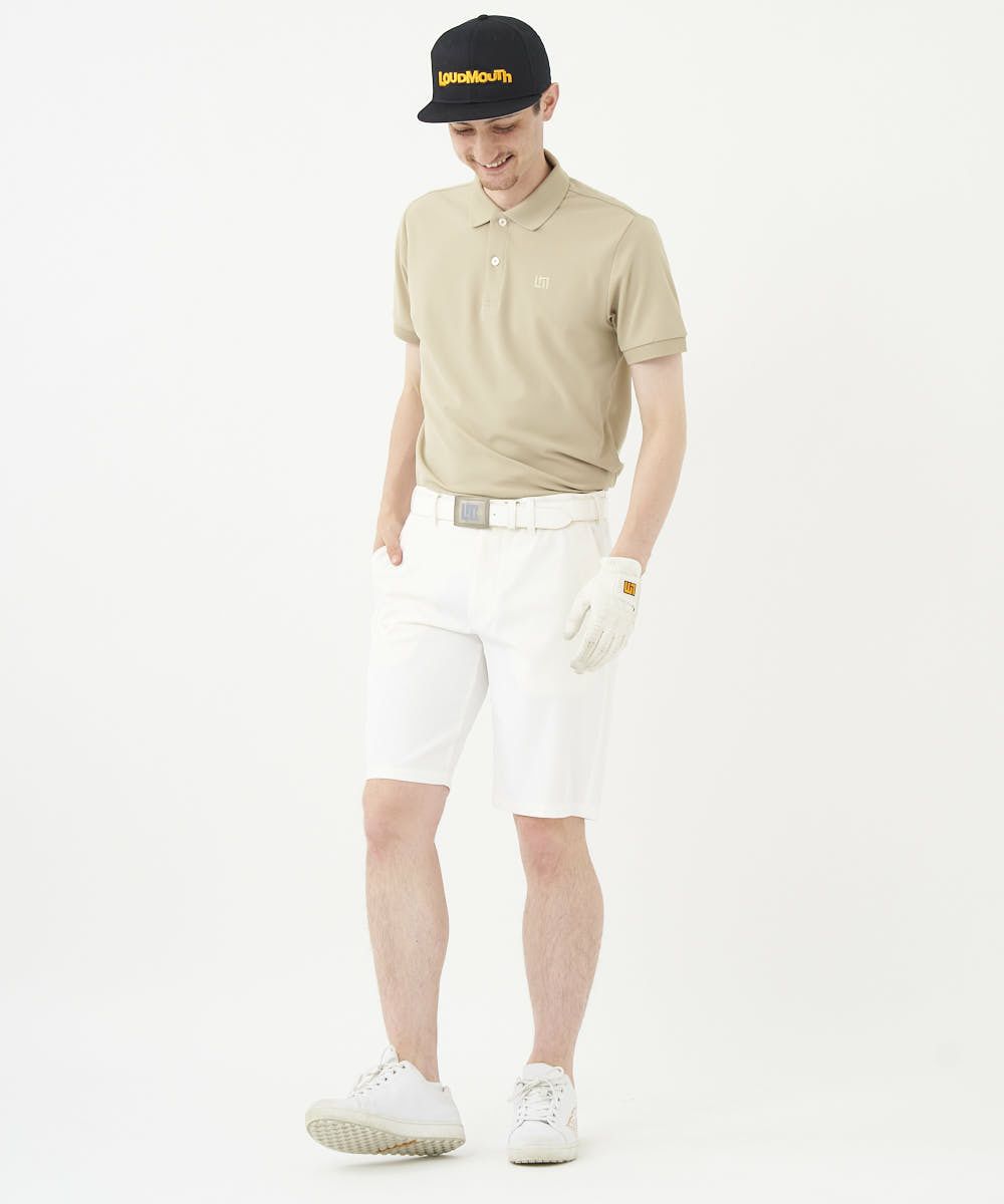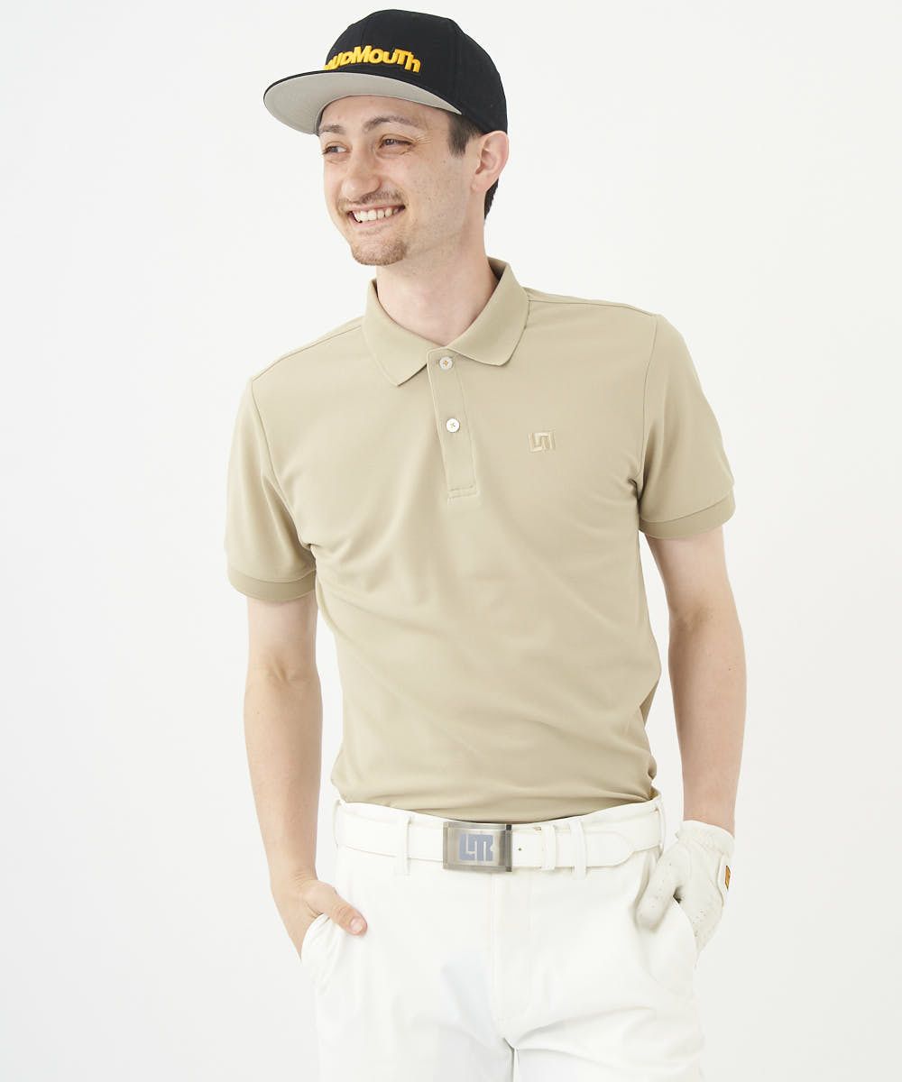 ラウドマウスロゴが同色系で落ち着いたカラーリングの無地半袖ポロシャツ。