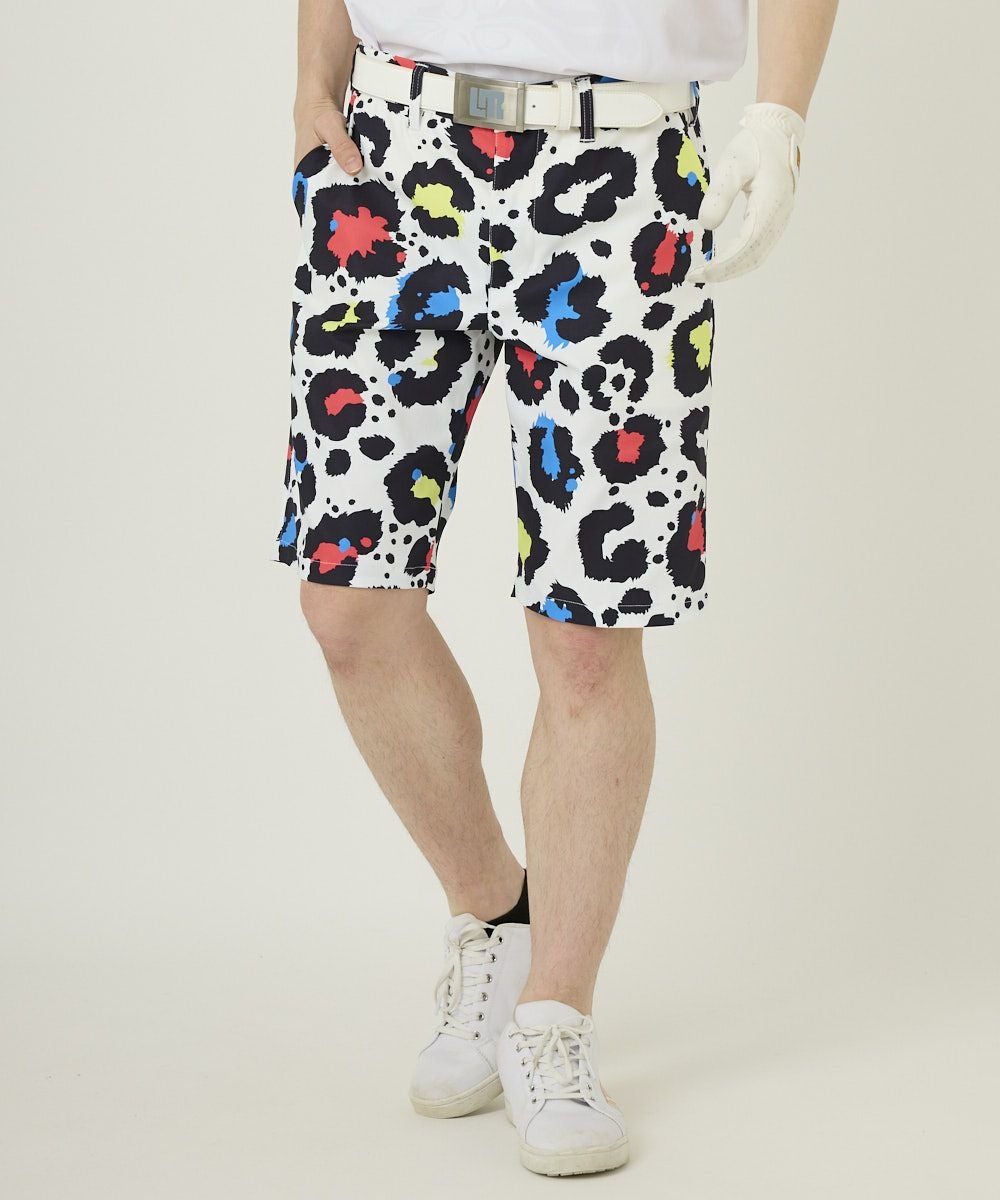 メンズ ショートパンツ ツイル素材 ネオンレオパード UV/ストレッチ