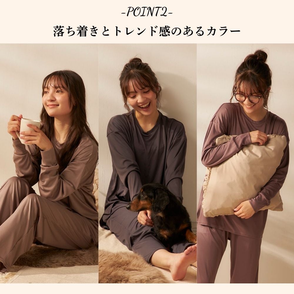 【NET限定】レディースセットアップ 犬や猫の毛がつきにくいルームウェア 静電気防止加工(長袖)