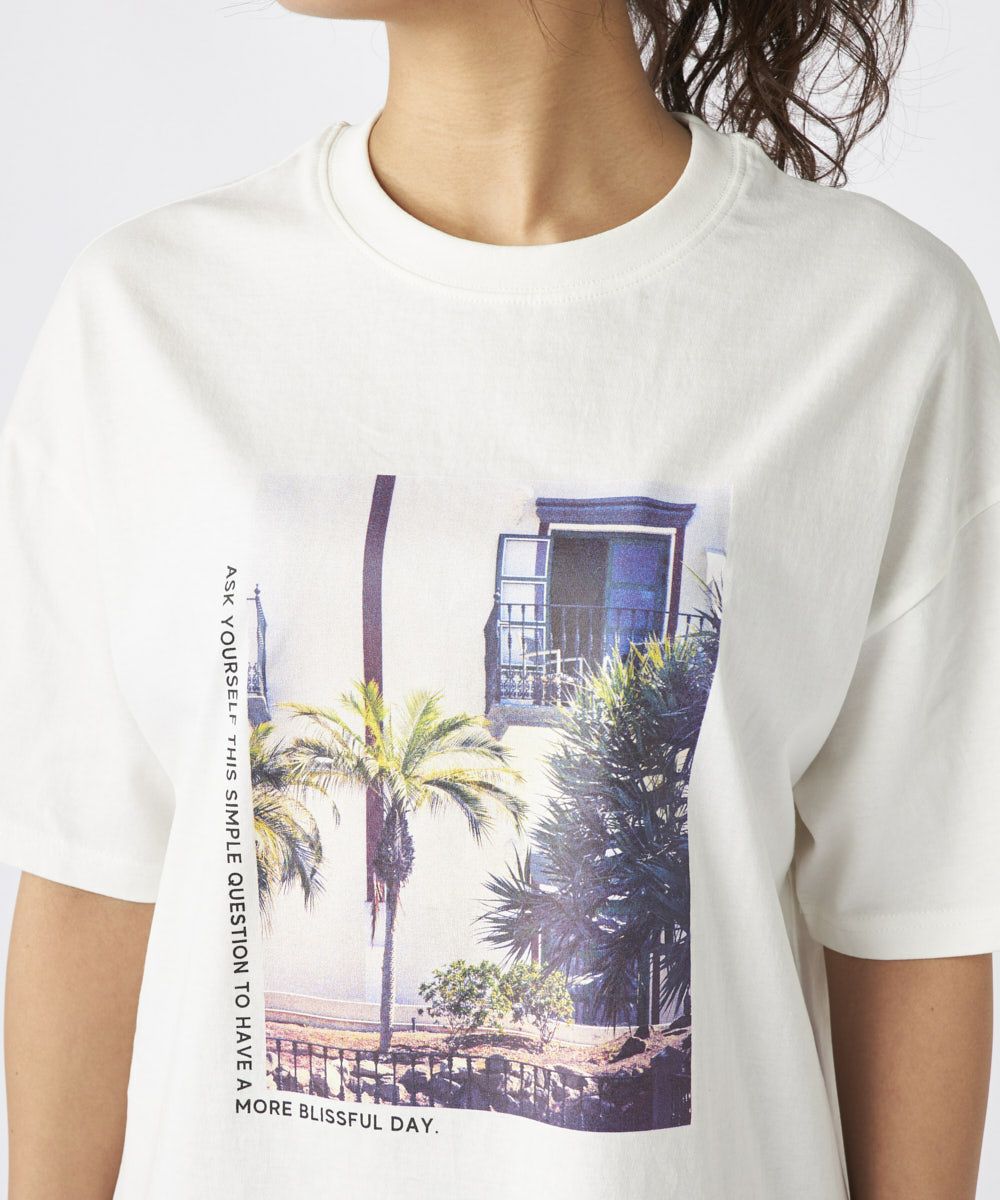 トレンドのフォトプリントTシャツが登場!カリフォルニアの街の一角の写真プリントがおしゃれで存在感抜群!1枚着るだけできまる!