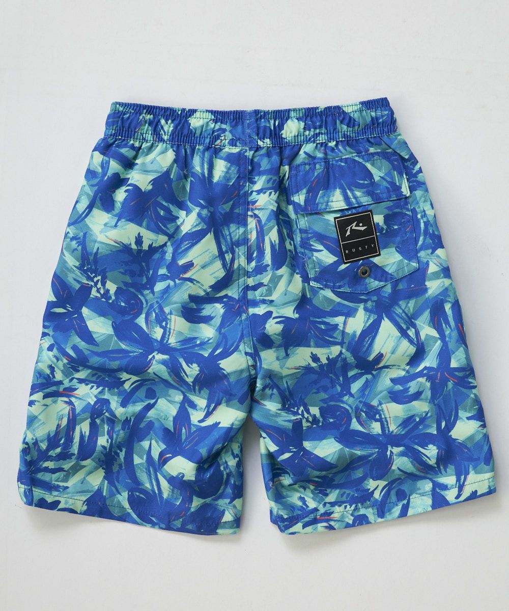 キッズのボードショーツ。トロピカルカモフラージュの柄が夏らしくスタイリッシュで大人っぽいキッズ用ボードショーツです。軽量で乾きやすいポリエステル素材を使用しており、水遊びやプール、アウトドアにぴったりの一本です。