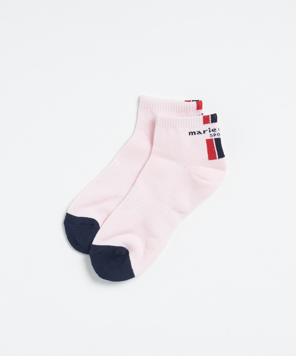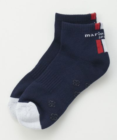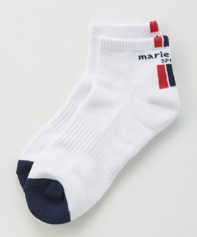 消臭持続糸を使用した抗菌・防臭効果のあるアンクルソックスです。ワンポイントのトリコロールがマリクレらしいアイテム。