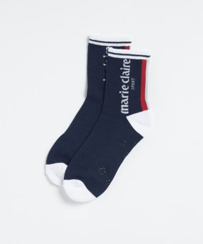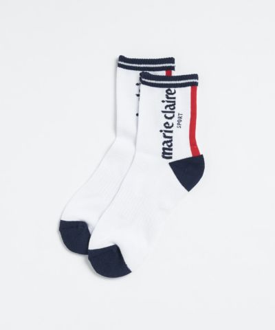 消臭持続糸を使用した抗菌・防臭効果のあるソックスです。ワンポイントのトリコロールがマリクレらしいアイテム。