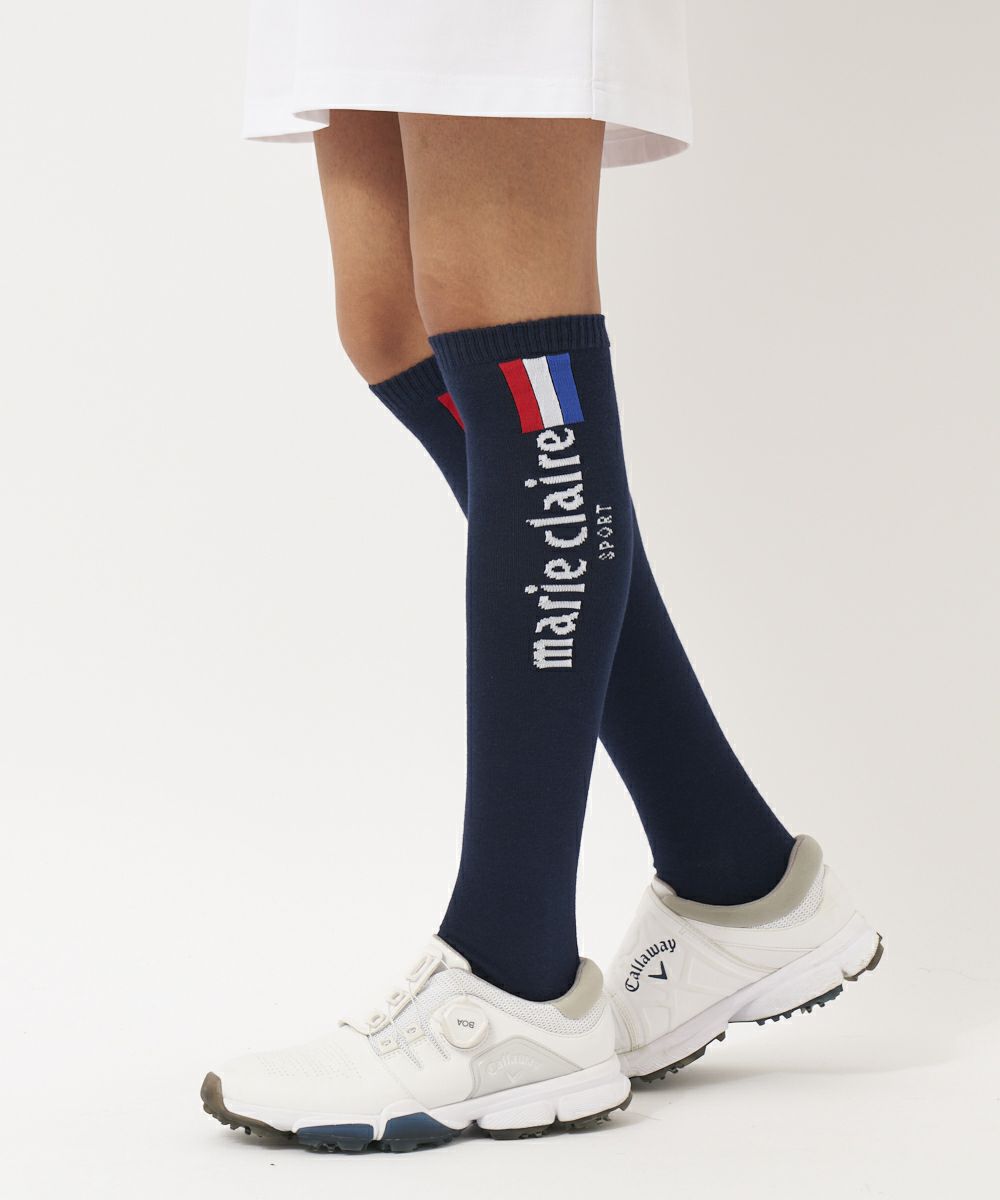 消臭持続糸を使用した抗菌・防臭効果のあるニーハイソックスです。ワンポイントのトリコロールがマリクレらしいアイテム。