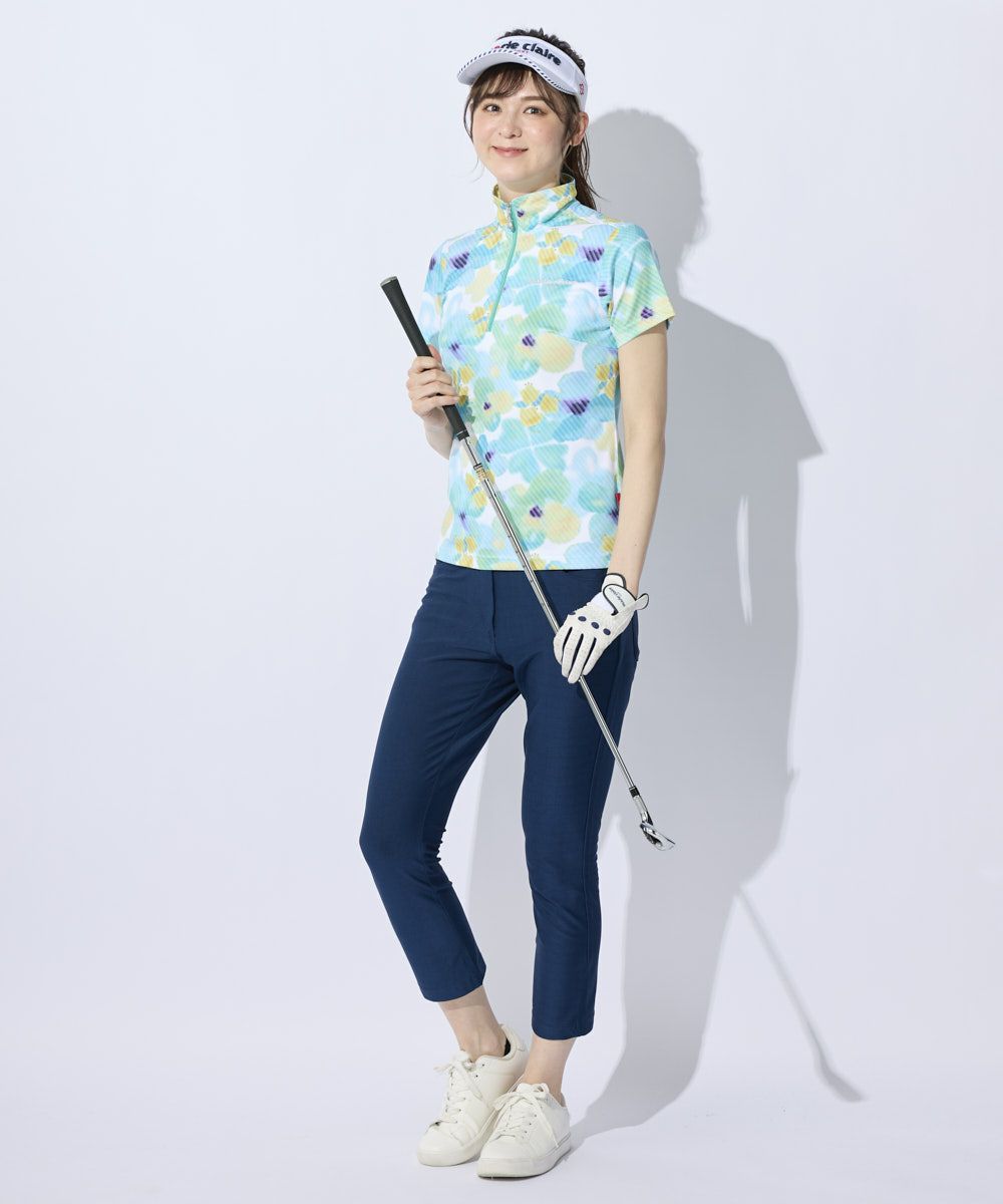 レディース ジップハイネック半袖シャツ|吸汗速乾 / UVカット / 吸湿涼感