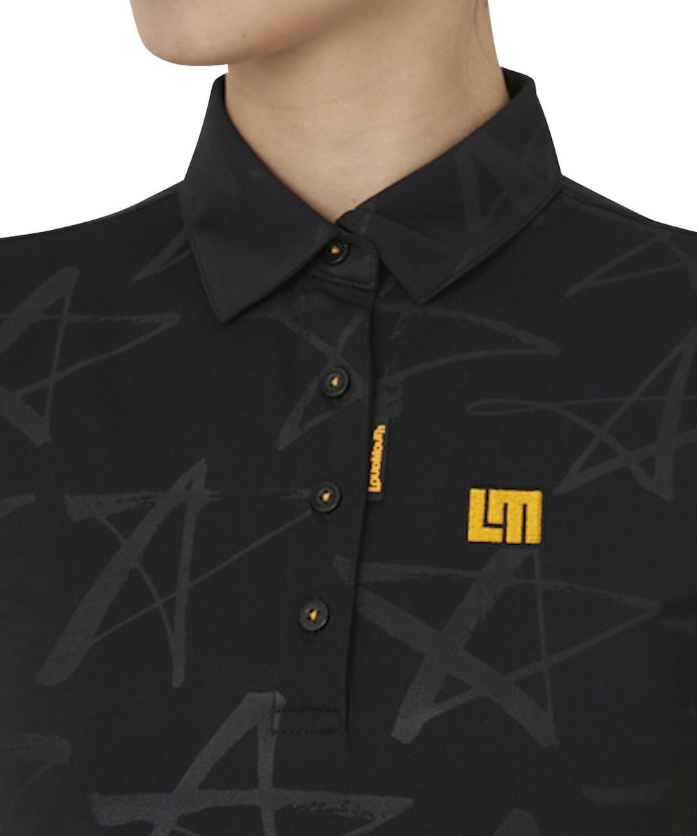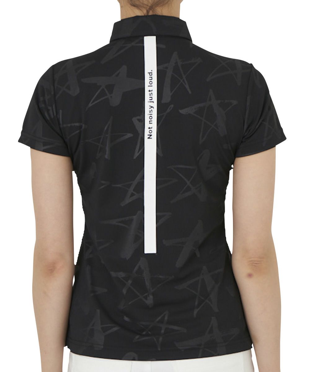 レディース 半袖ポロシャツ シューティングスター柄エンボス ブラック 吸汗速乾 UV