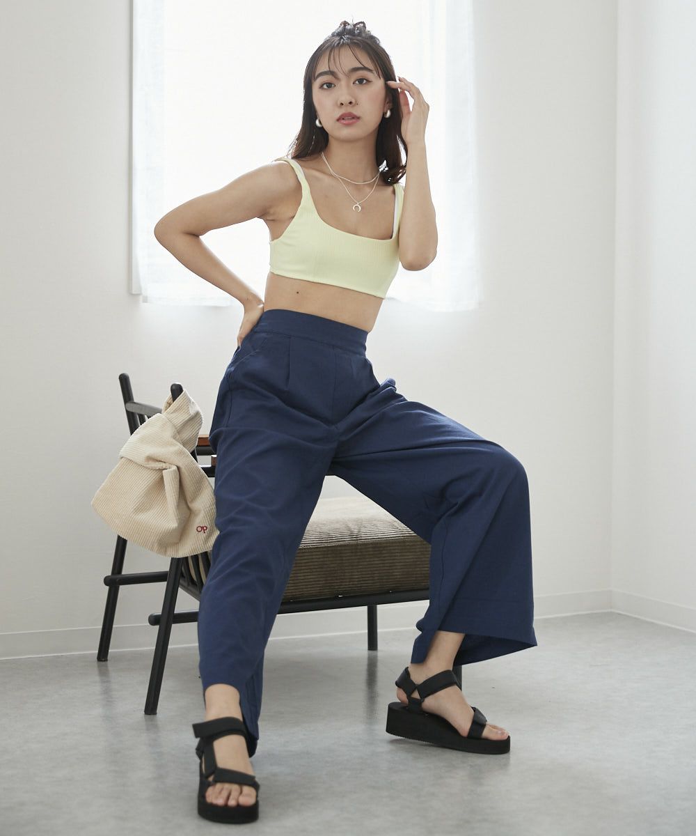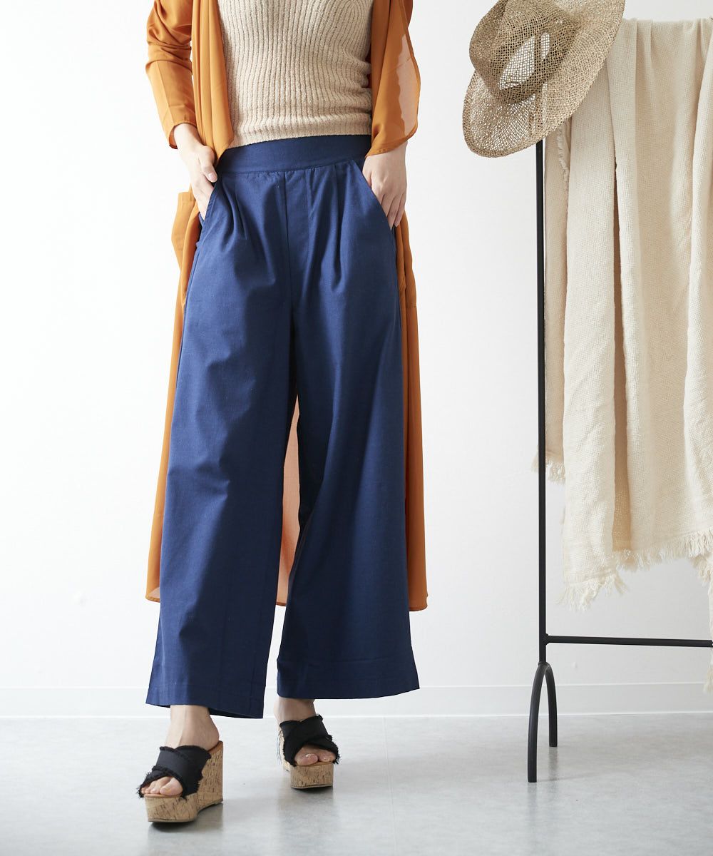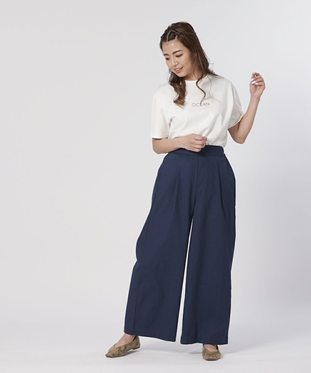 綿麻のナチュラルなワイドパンツです。ワンピースの下やTシャツとラフに合わせても◎