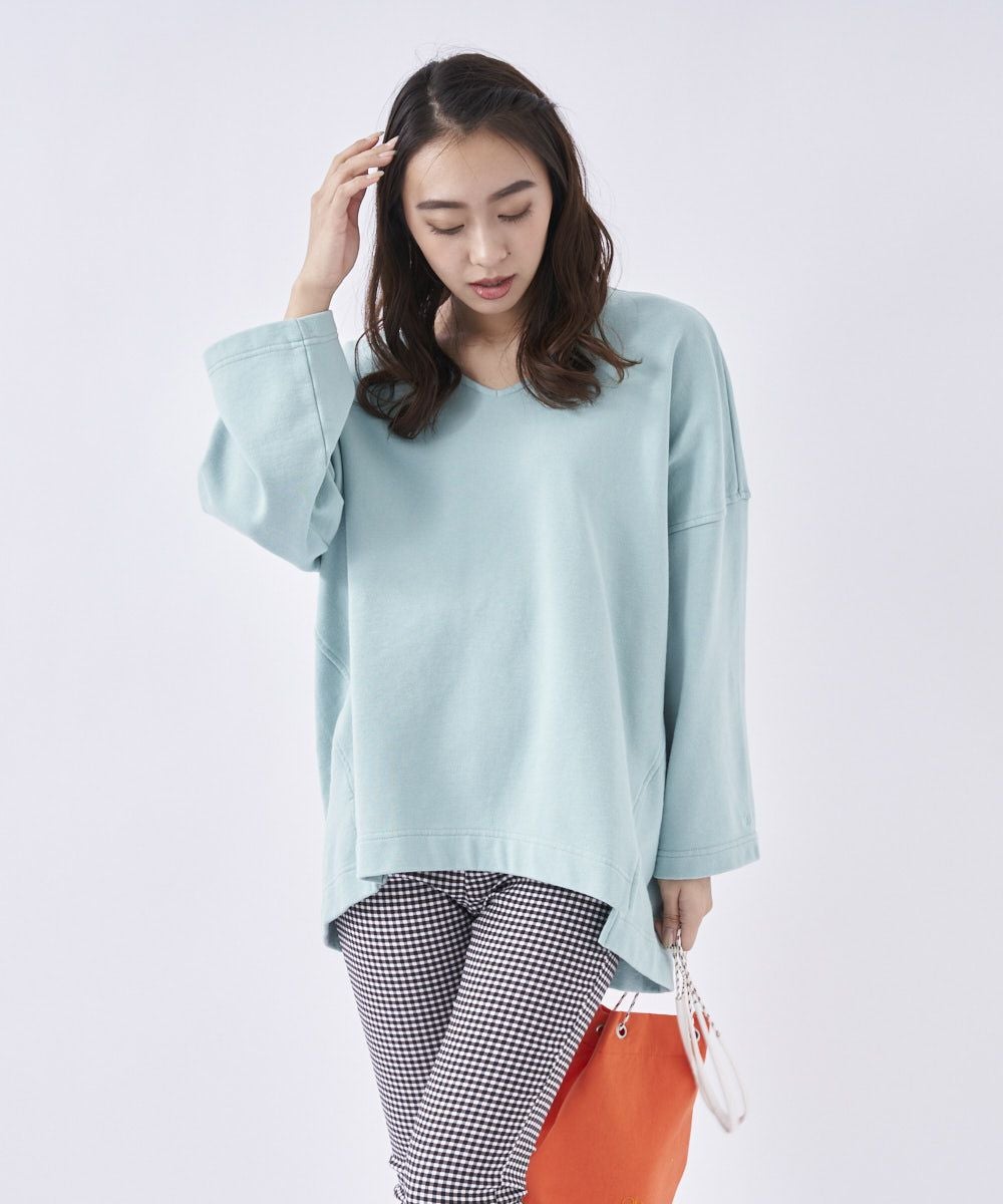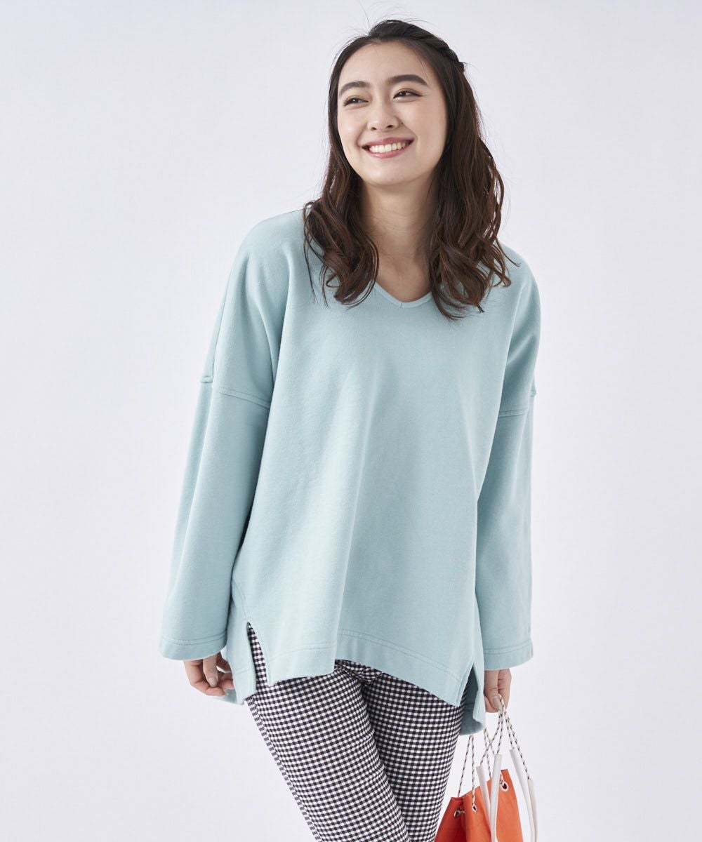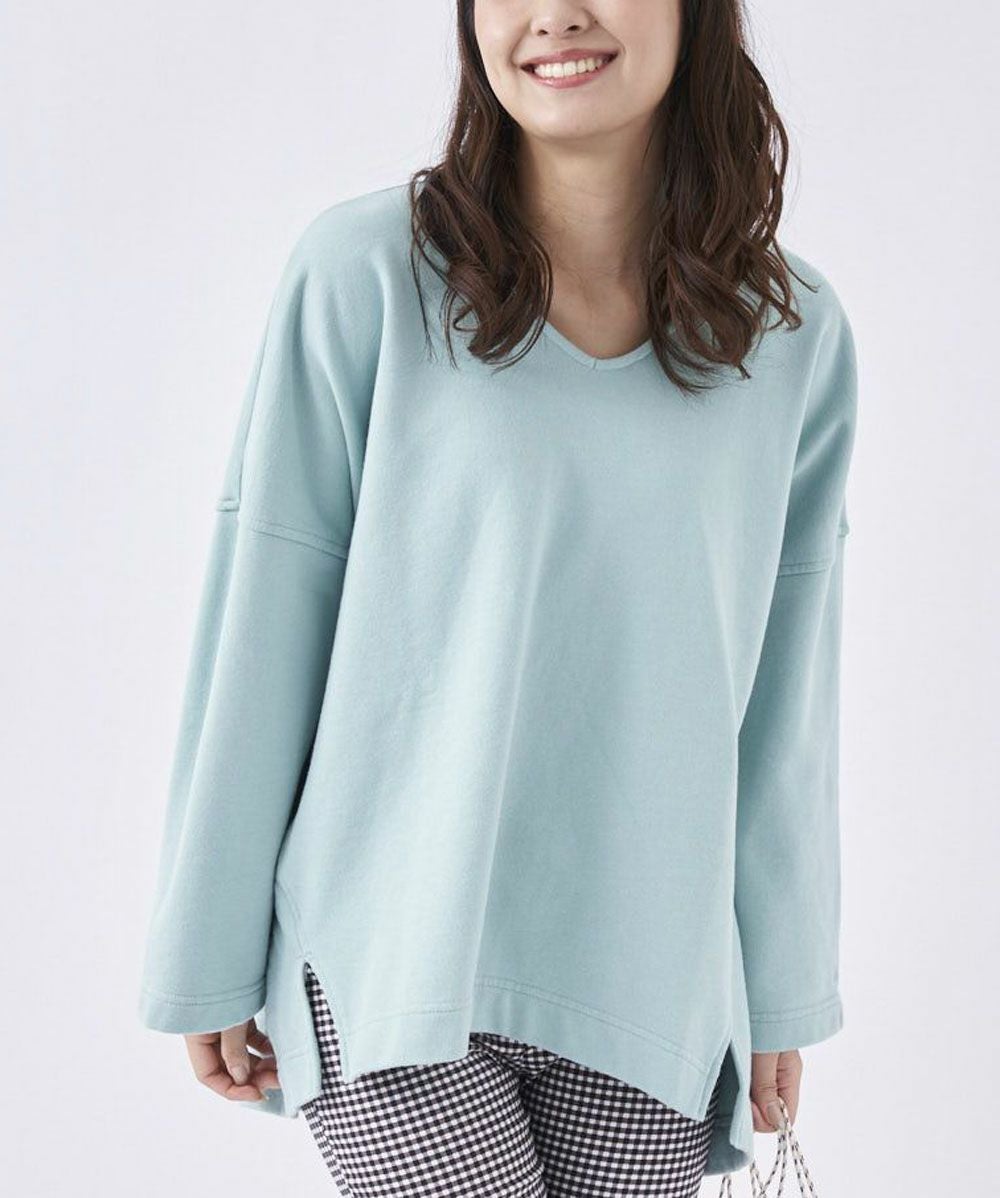 着回し力抜群『Vネックトレーナー』絶妙な丈感と綿100%の裏毛生地で極上の着心地も手に入れる優秀トレーナー。前後差のある裾とスリット入りがこなれ感抜群で、一枚でもインナー使いでお洒落も楽しめる万能なアイテム。