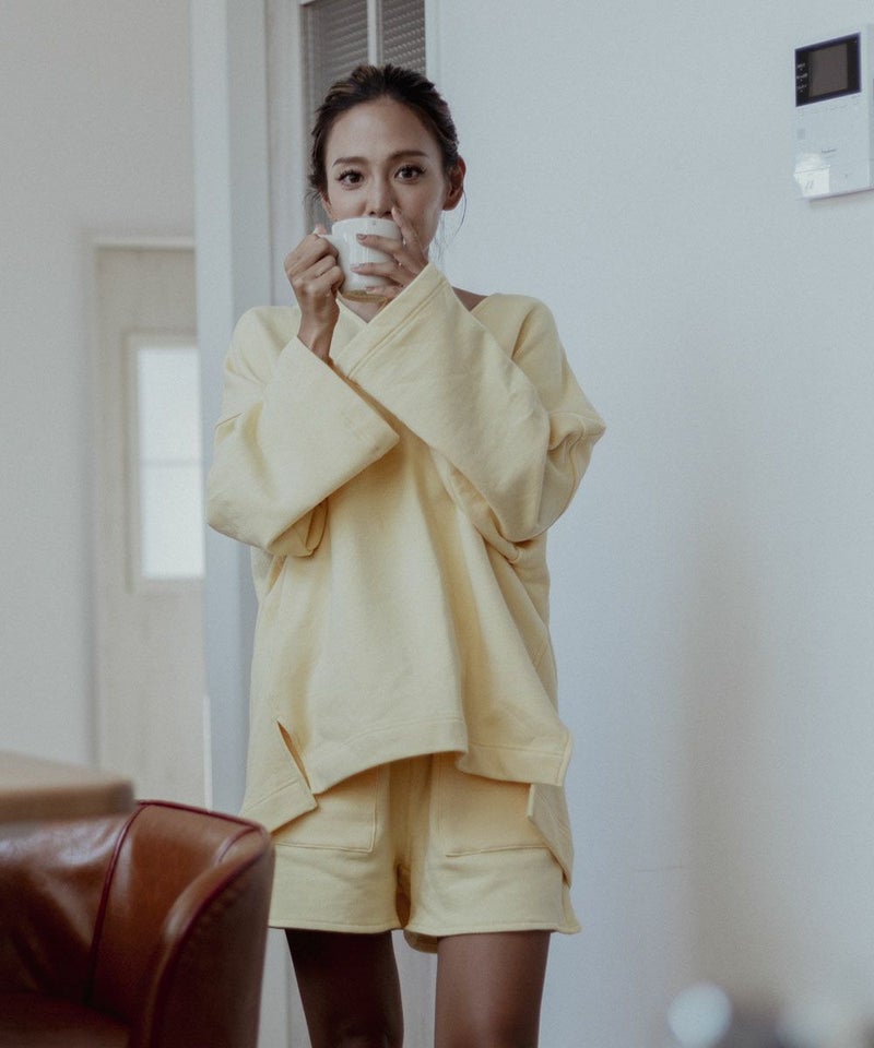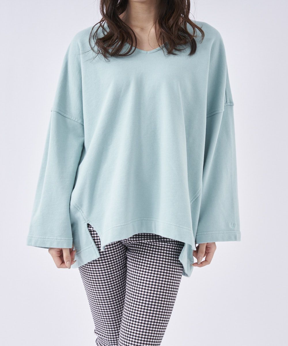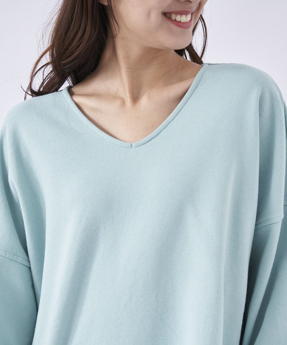 着回し力抜群『Vネックトレーナー』絶妙な丈感と綿100%の裏毛生地で極上の着心地も手に入れる優秀トレーナー。前後差のある裾とスリット入りがこなれ感抜群で、一枚でもインナー使いでお洒落も楽しめる万能なアイテム。
