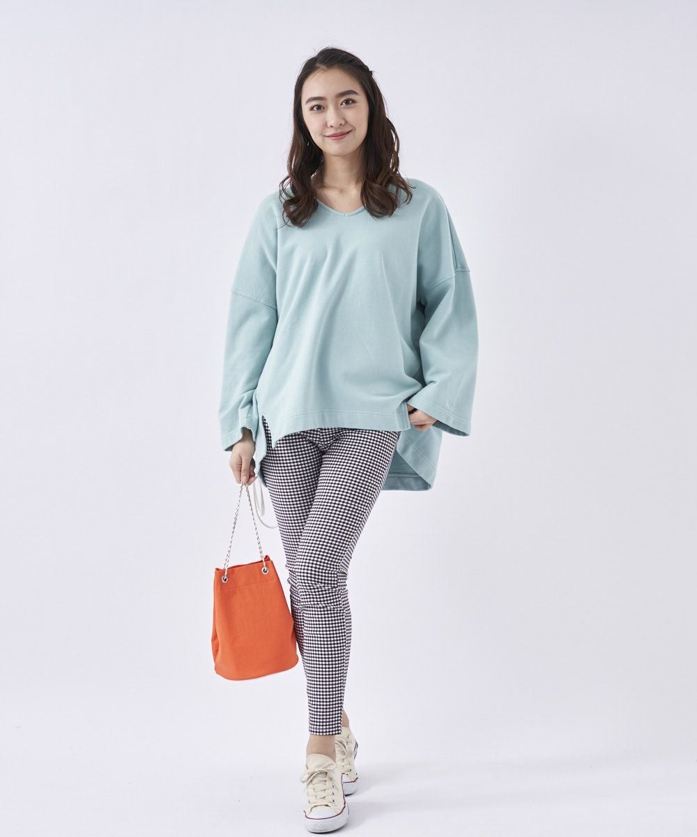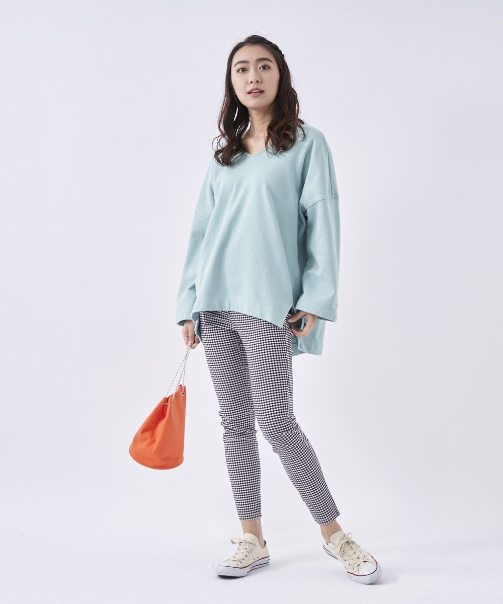 シルエットは着回しやすいシンプルなデザインで顔周りすっきり見せ叶えるVネックが一番のポイント!!レイヤードもしやすいゆるっとサイジング。