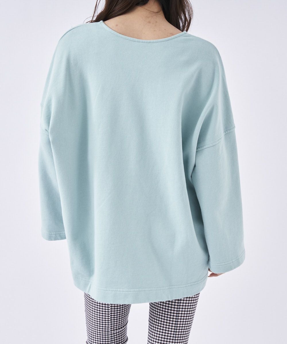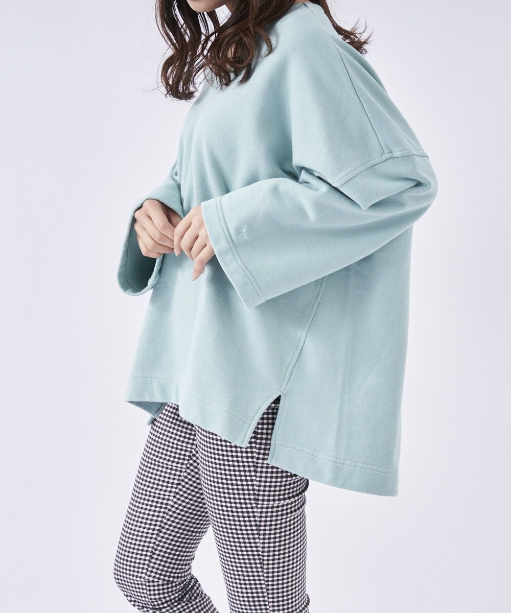 製品バイオウォッシュをかけたプルオーバー。ゆったりシルエットとルーズな袖がポイント。 セットアップ着用がおすすめ!