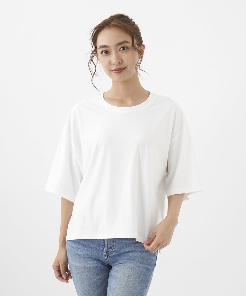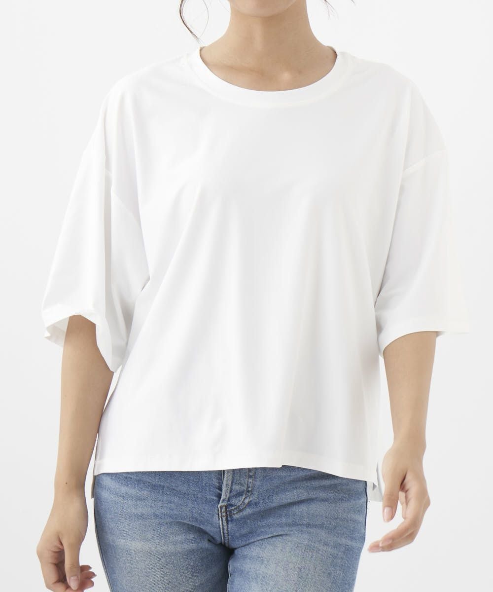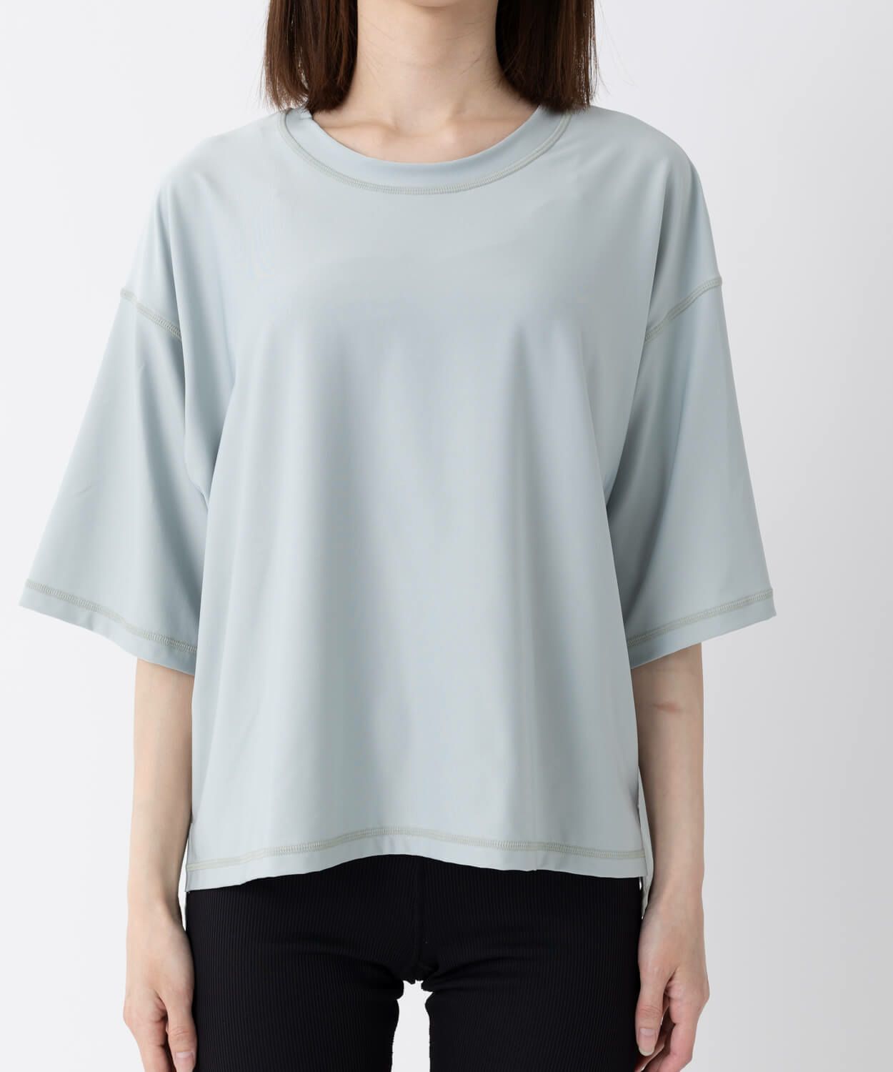 軽めの素材感でプールや海はもちろん街着としても着用できるTシャツ。ワイドな身幅と少し短めのシルエットがポイント。