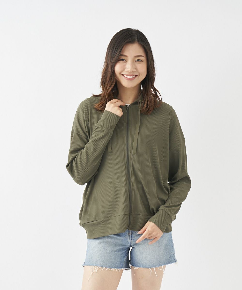 リブ素材のアパレルライクなUVパーカー。海、プール、タウン、様々なシーンで活躍。