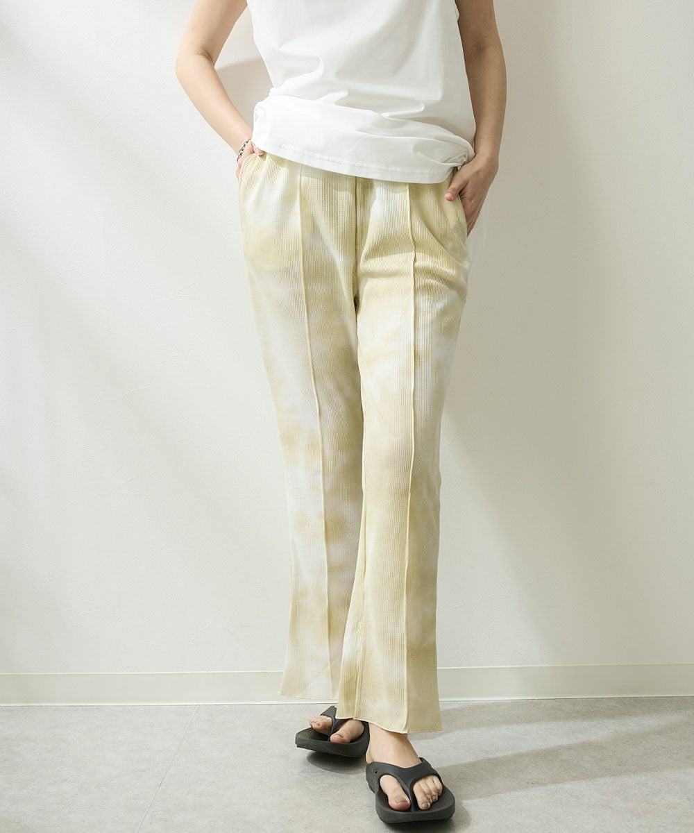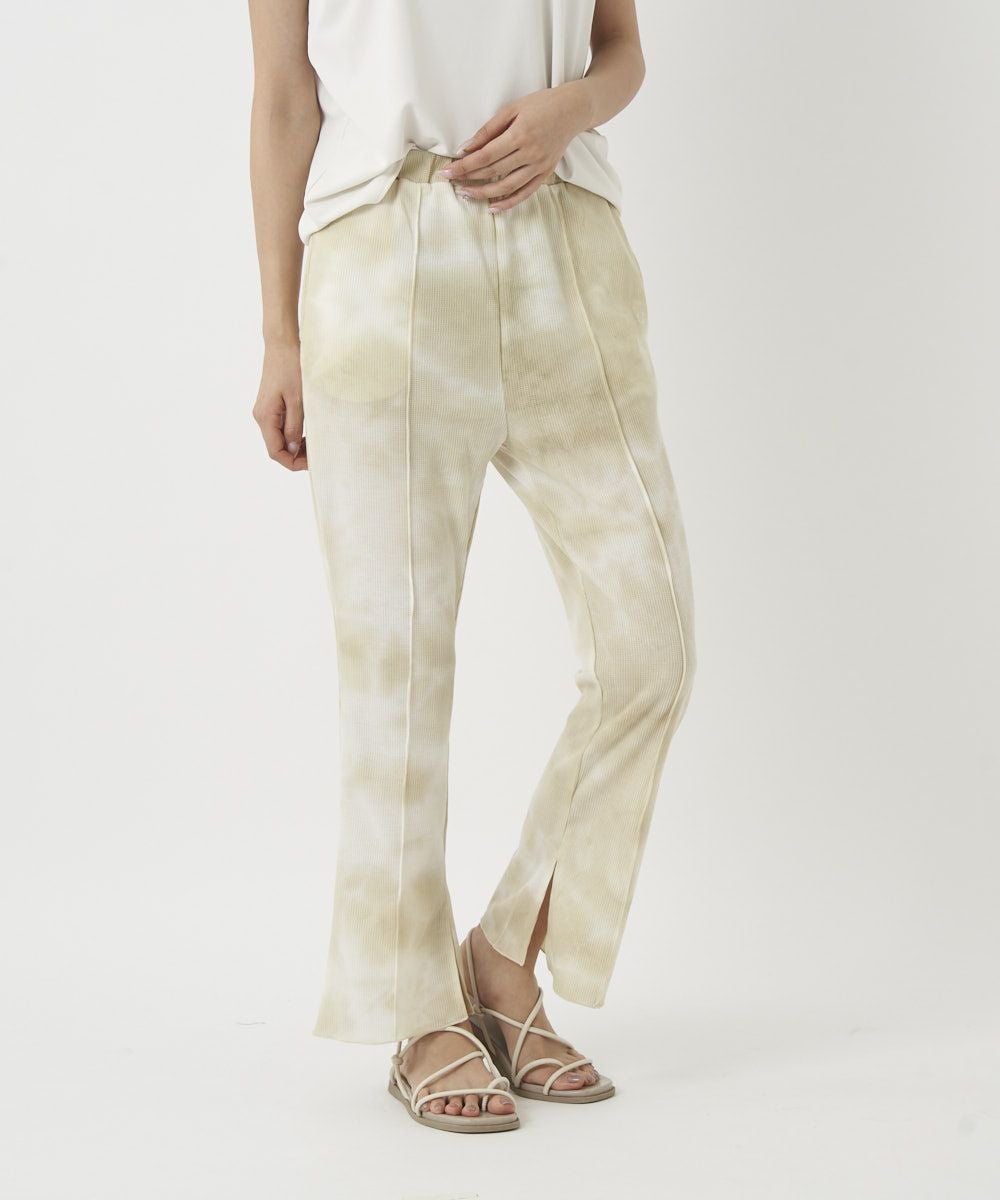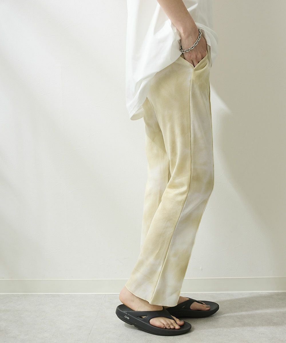 裾にスリットの入ったロングパンツデザイン。水にも入れるハイブリッドワッフルなので、 普段着でも水回りのレジャーでも様々なシーンで着て頂けます。