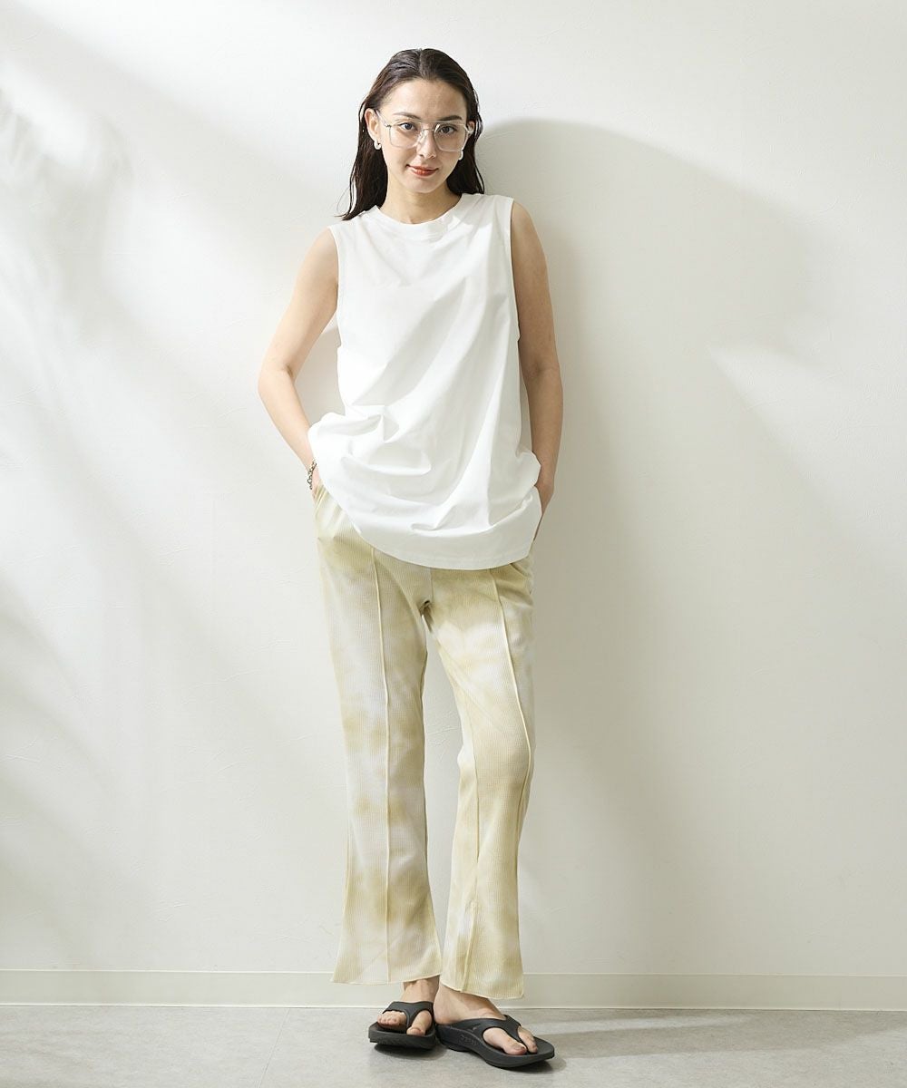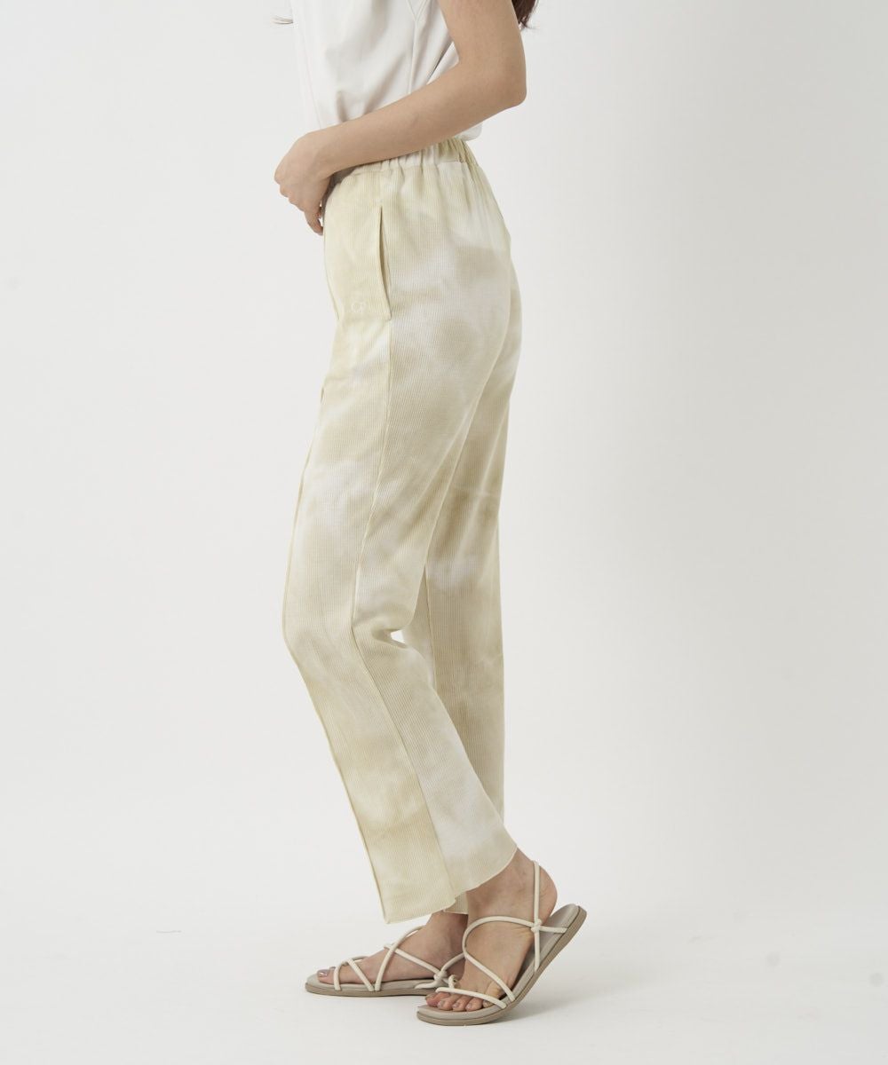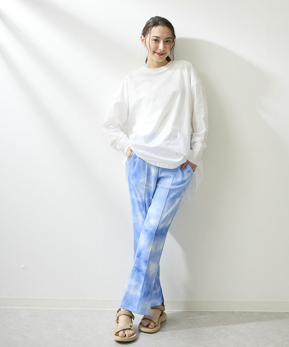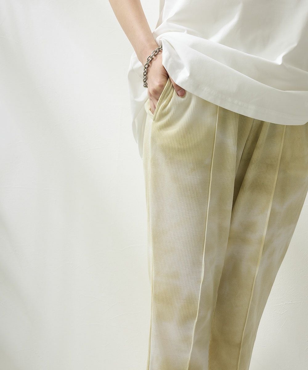 裾にスリットの入ったロングパンツデザイン。水にも入れるハイブリッドワッフルなので、 普段着でも水回りのレジャーでも様々なシーンで着て頂けます。