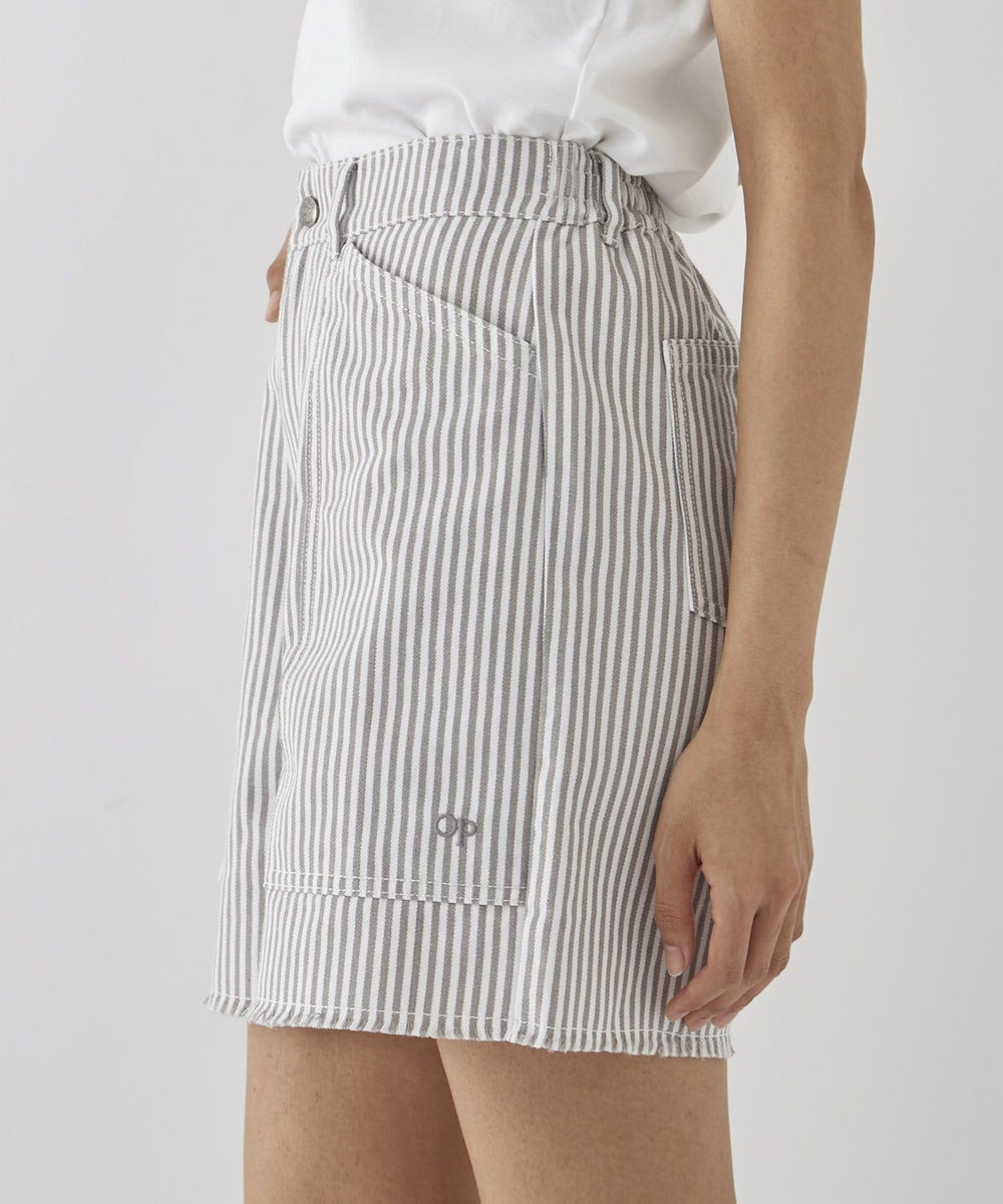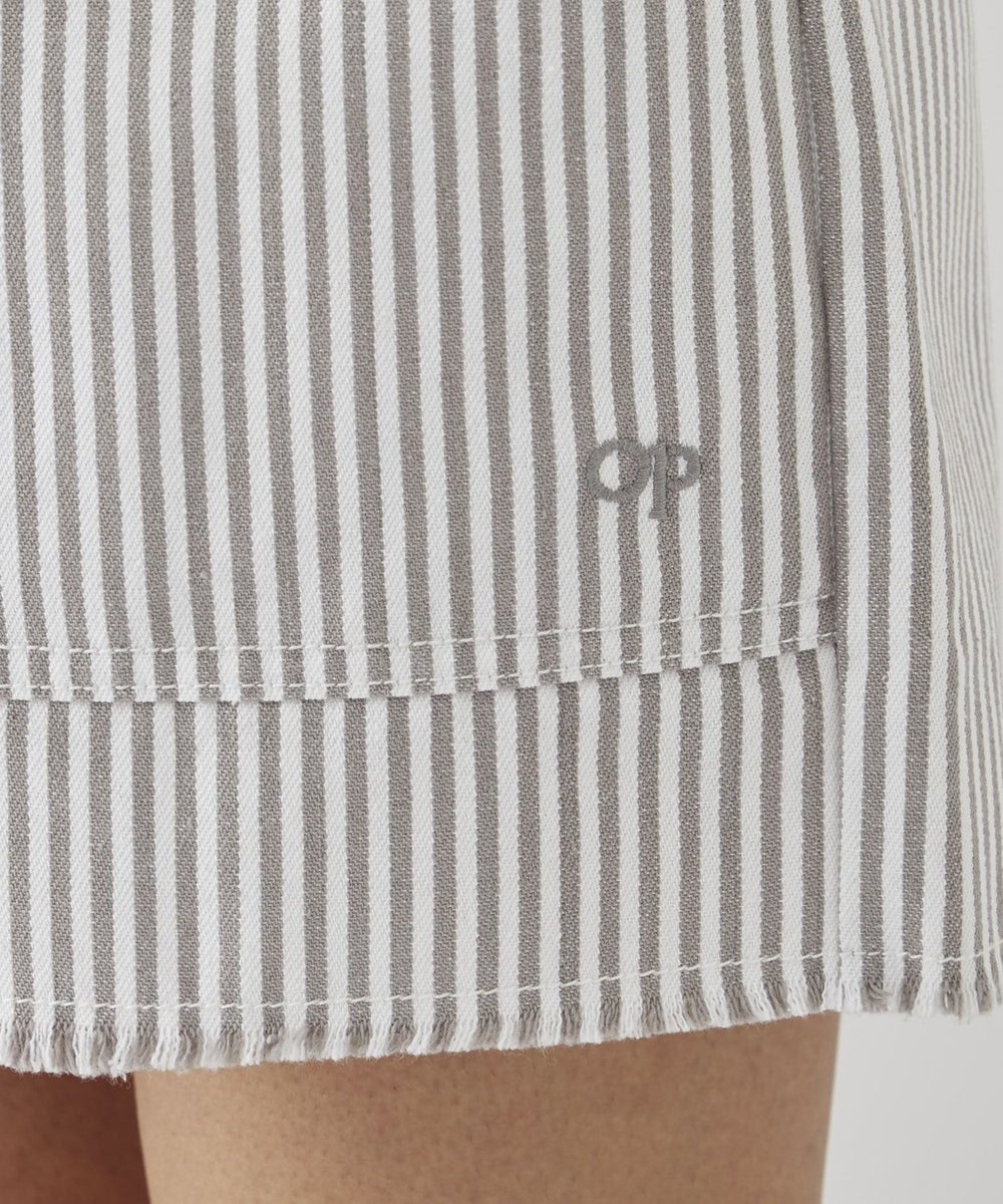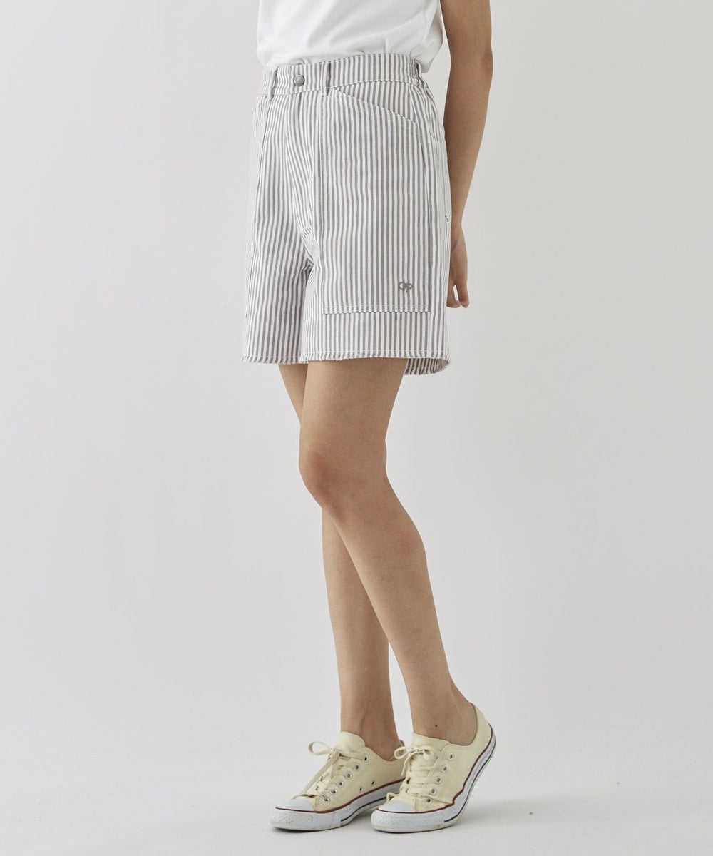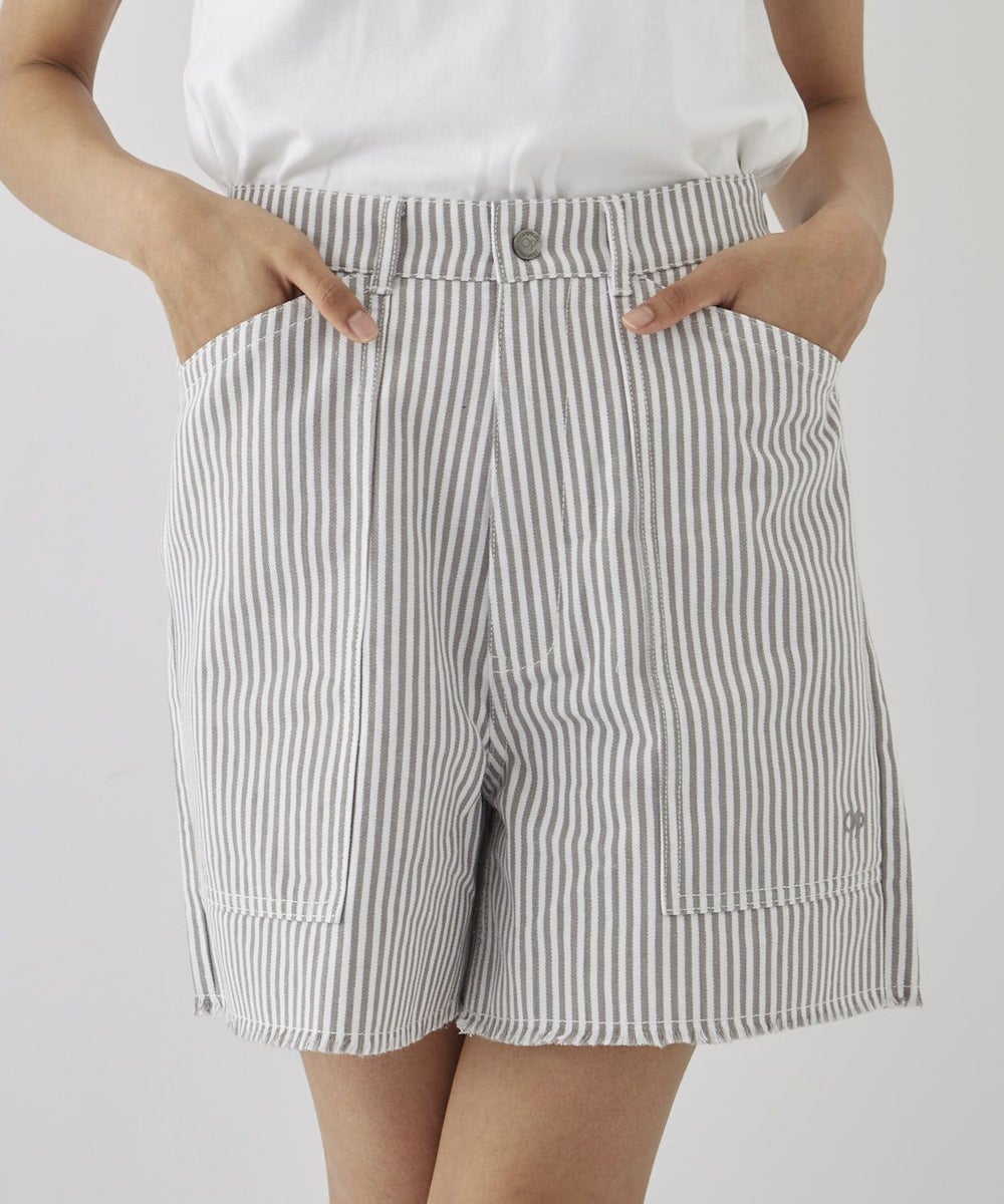 キレイなカラーのストライプ生地を使ったショーツ。切りっぱなしのラフな雰囲気が可愛い1枚です。