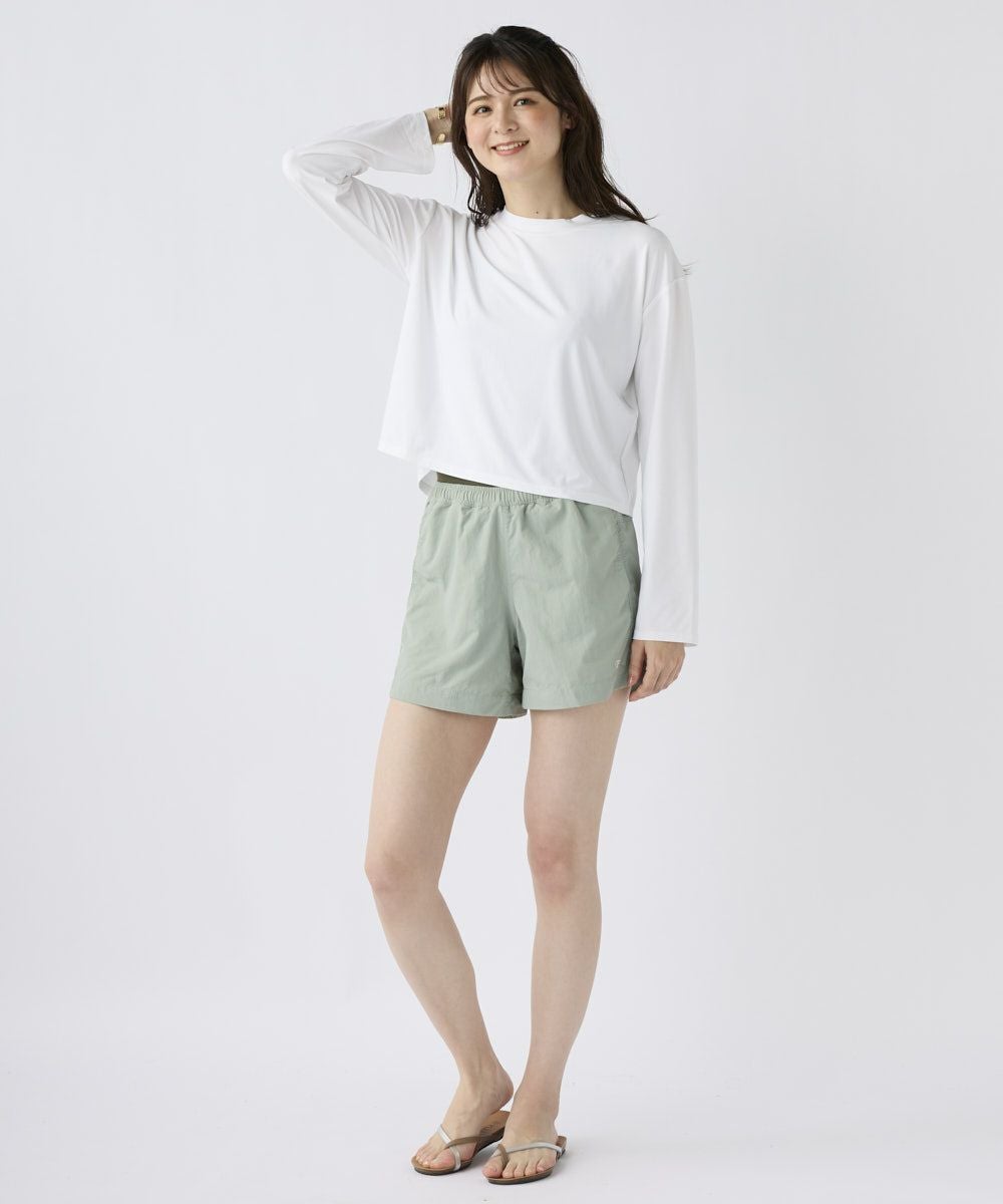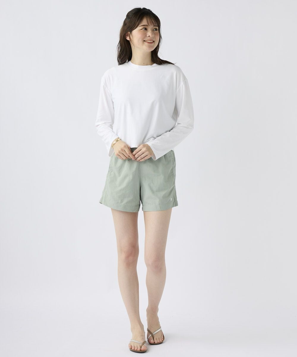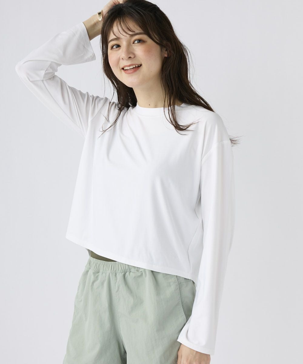 ストレッチ性が有り、UVカット、耐塩素の機能付きベア天竺素材で水陸着用可能なハイブリッド商品。Bac
