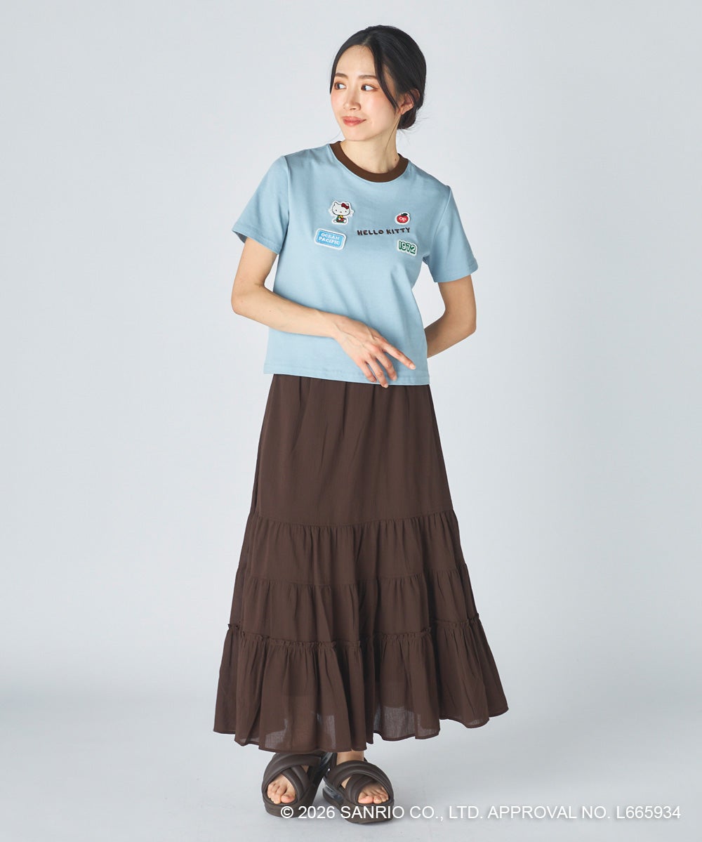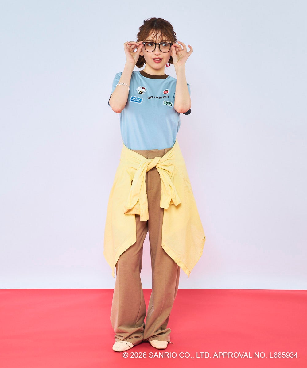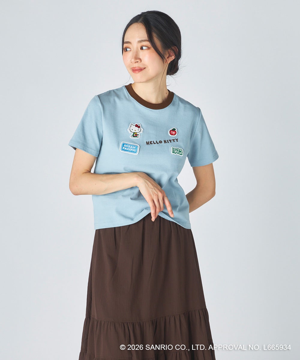 胸元に立体感のあるワッペンとロゴ刺しゅうをあしらった、レトロかわいいコラボTシャツ。「HELLO KITTY」のロゴや“1972”のナンバリング、Ocean Pacificのネームタグ風ワッペンなど、遊び心のあるモチーフをちりばめました。