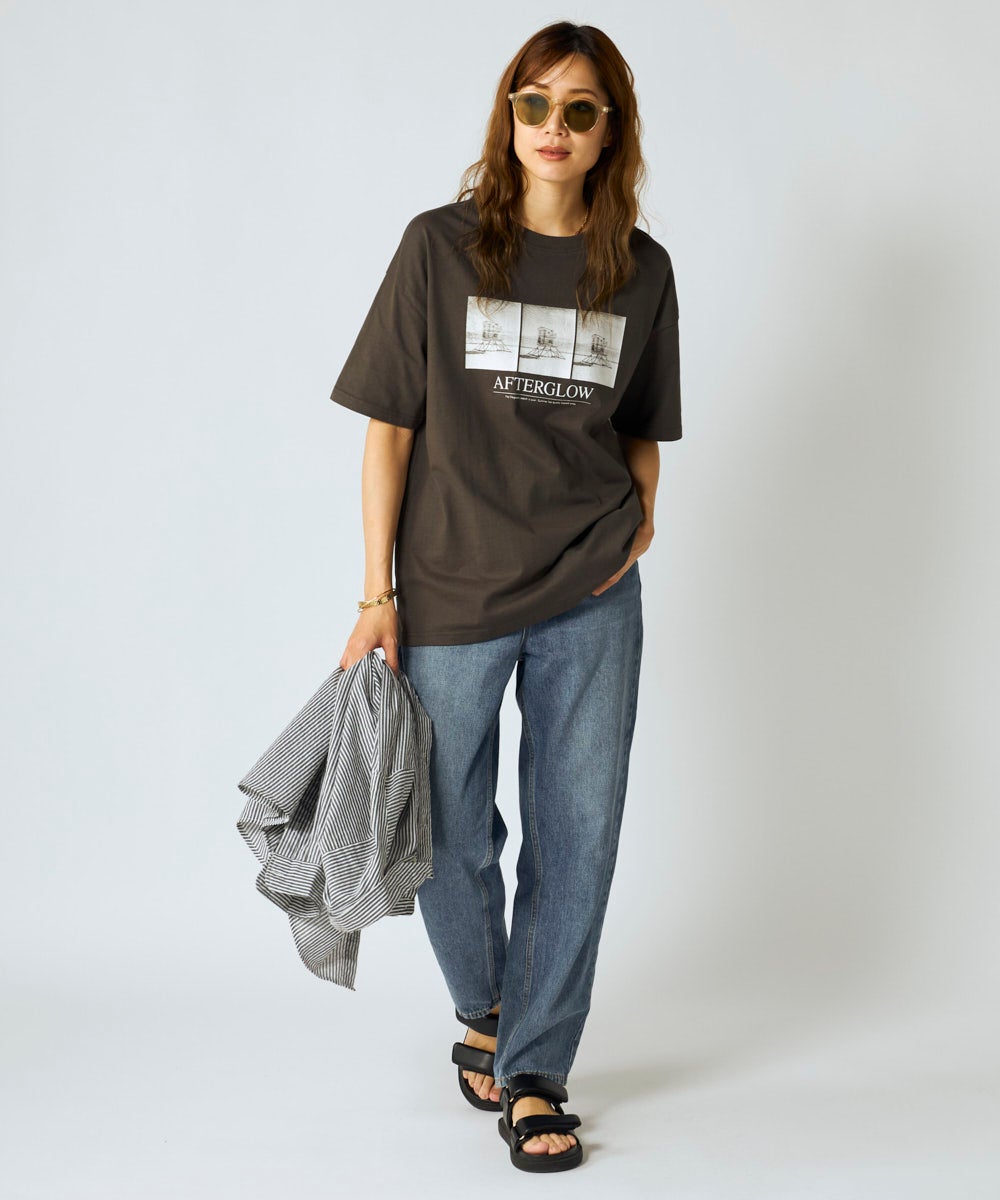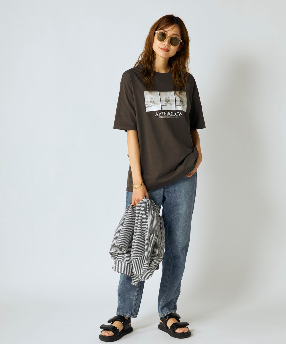 爽やかでノスタルジックな雰囲気漂うフォトプリントTシャツ。ライフガードタワーのフォトプリントに、ロゴ がアクセント。ドロップショルダーのゆったりとしたシルエットで、ニュアンスカラーのプリントが、大人のリ ラックススタイルに程よい抜け感をプラスしてくれます。デイリーユースはもちろん、海辺のドライブや休日の お出かけにもおすすめ。