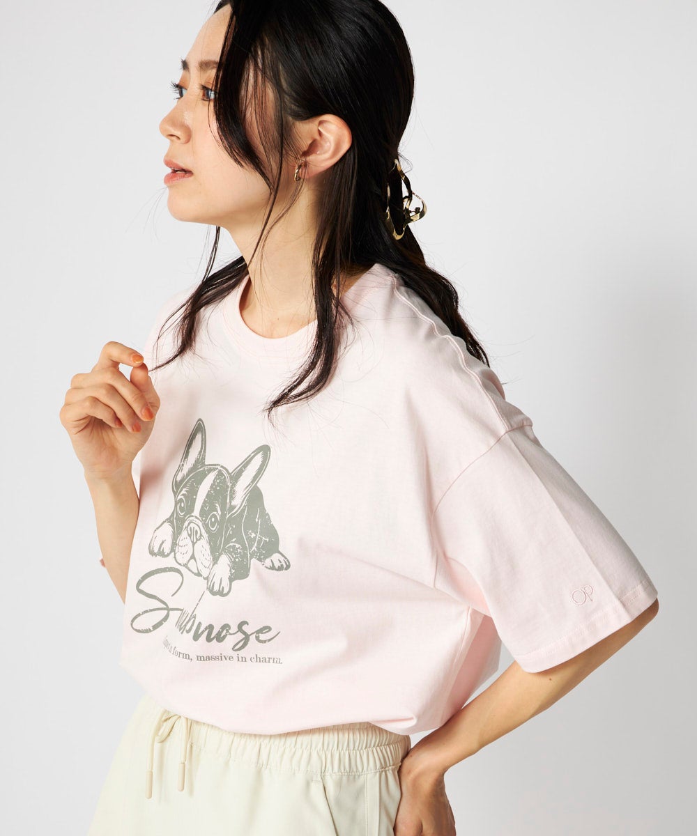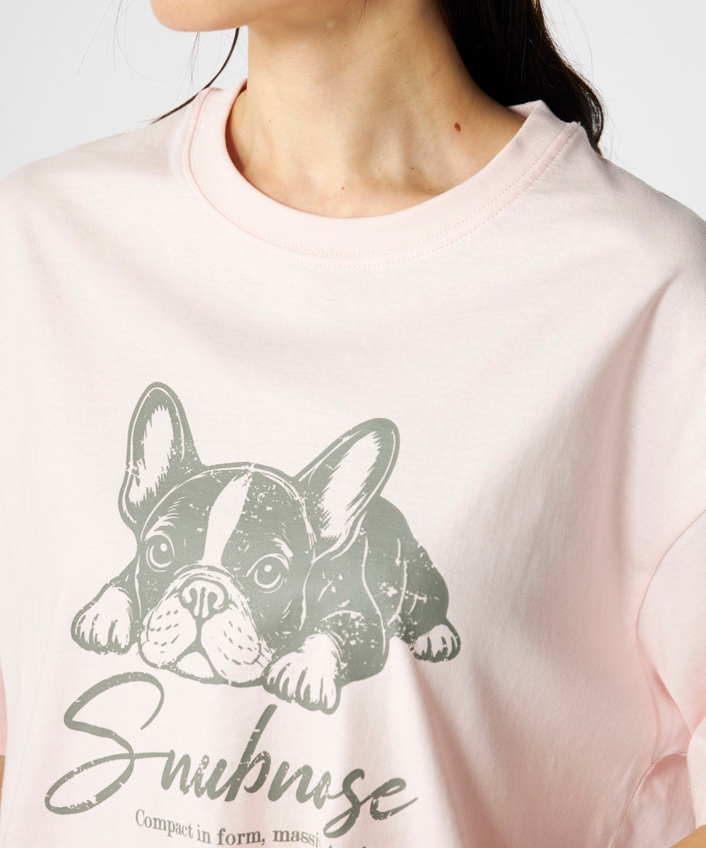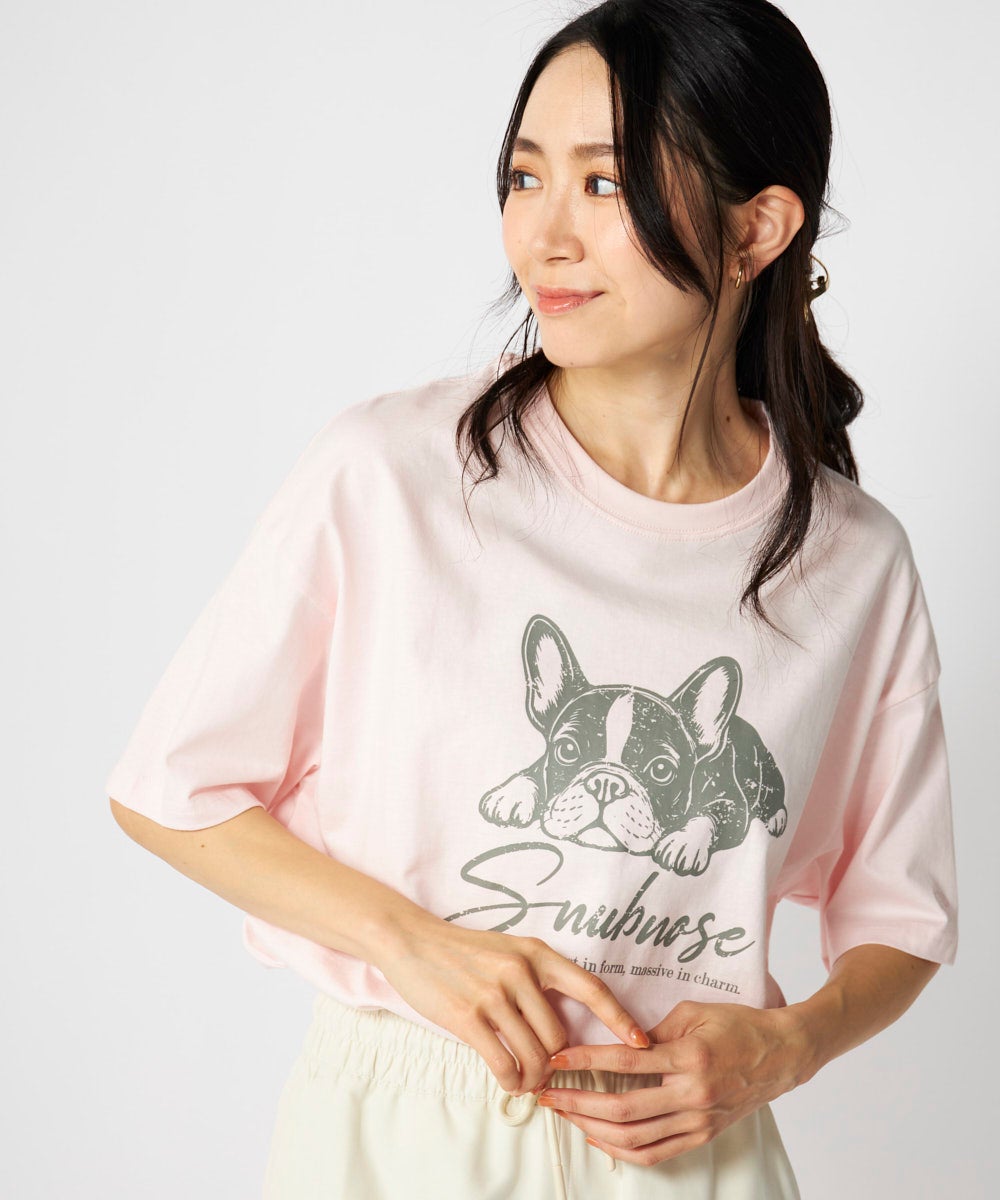 レディース ドッグモチーフかすれプリント半袖Tシャツ